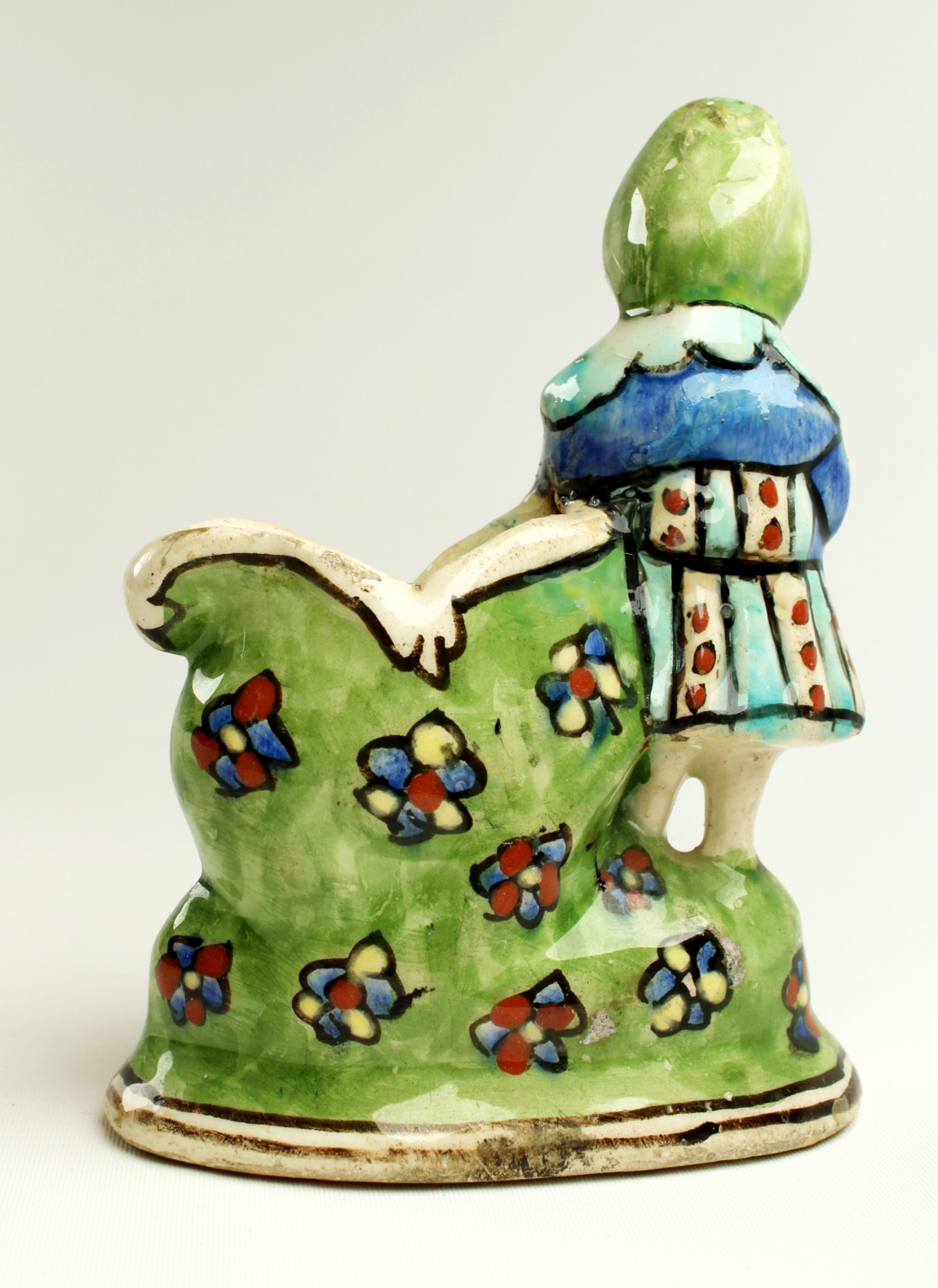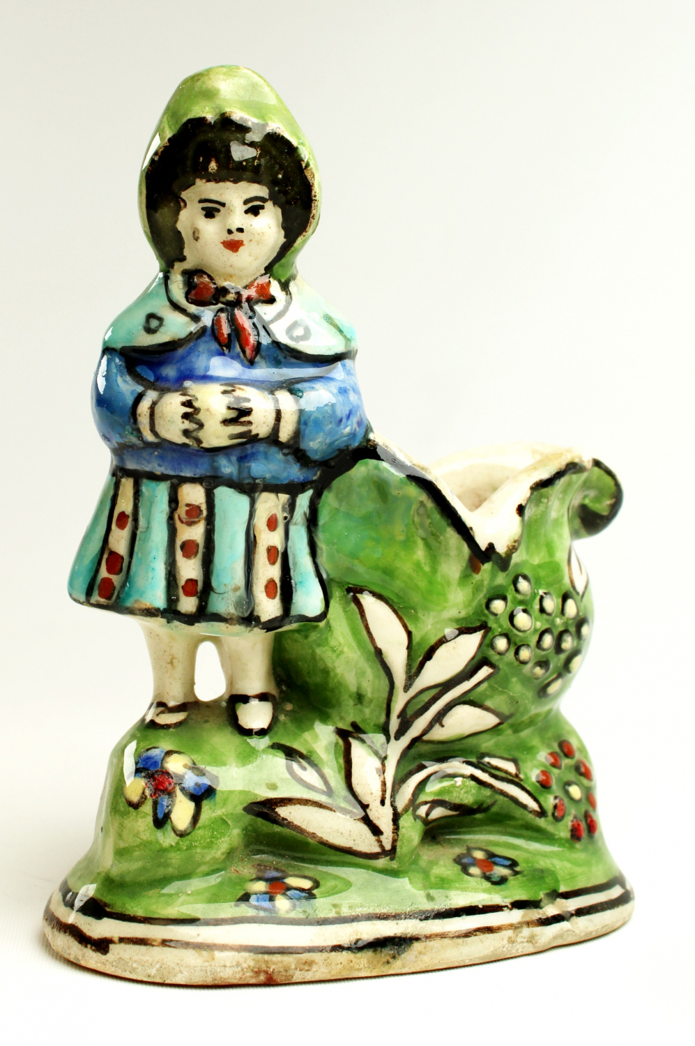 Kütahya seramik kız figürlü kalemlik, eski dönem, 11,5x11 cm