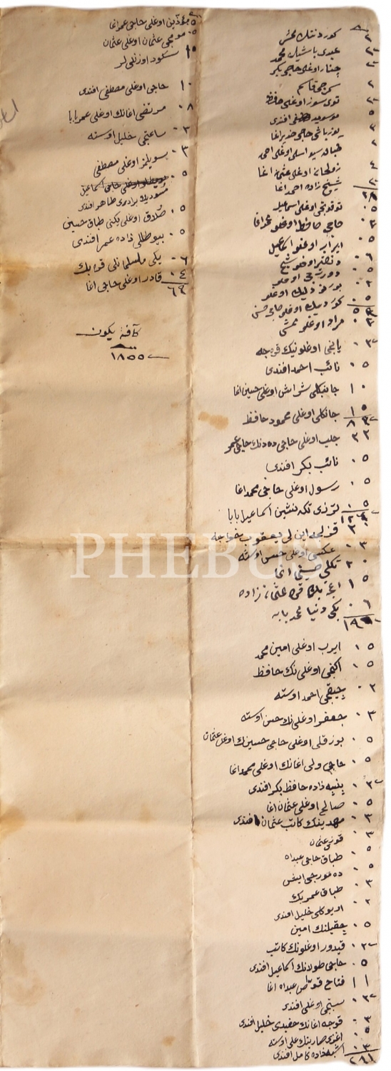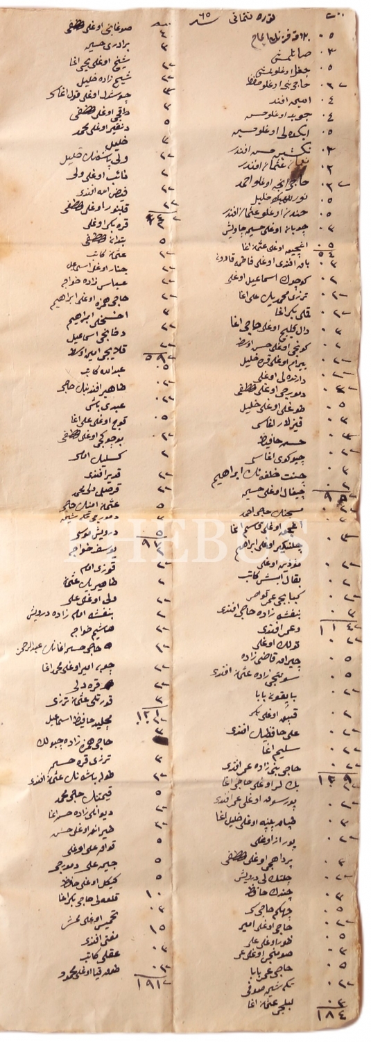Üzerinde Osmanlıca isimler ve hesaplamalar bulunan belge, 33x46 cm