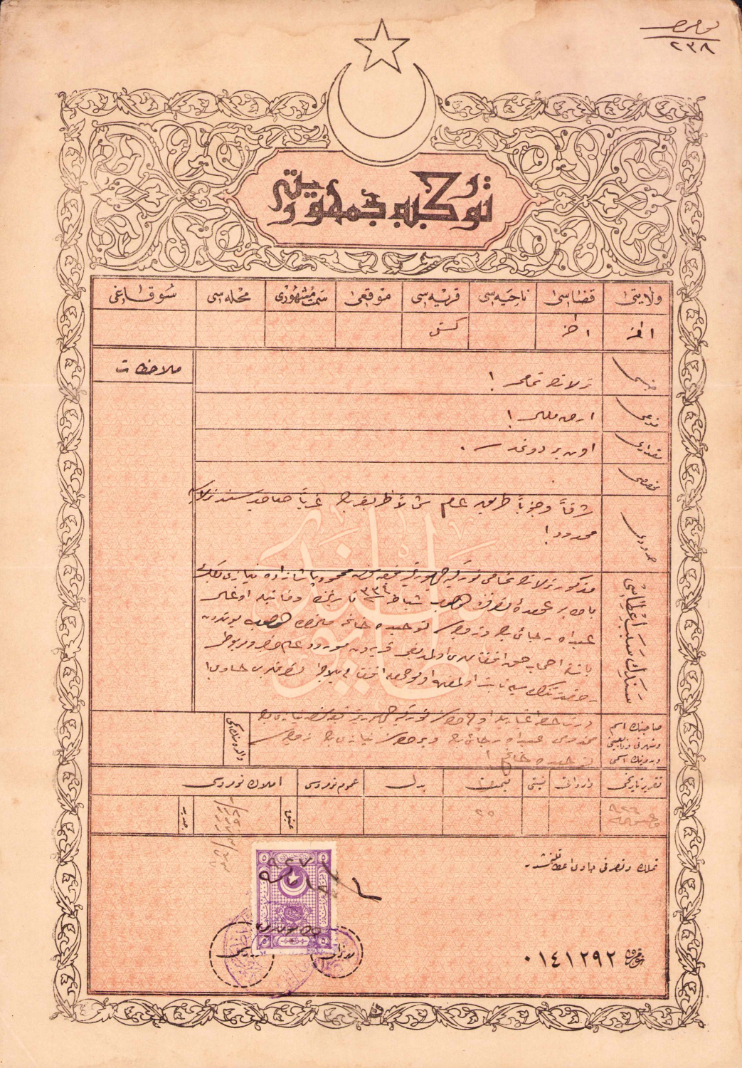 Osmanlıca Türkiye Cumhuriyeti tapu senedi, 1927 tarihli, katlamalı, 11,5x22cm