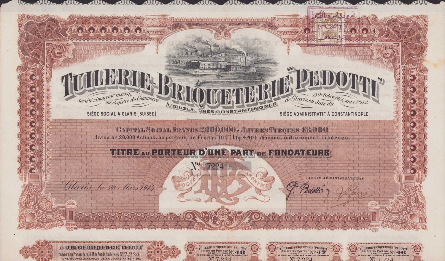 Constantinople, Tuzla Tuğla Fabrikası Hisse Senedi.