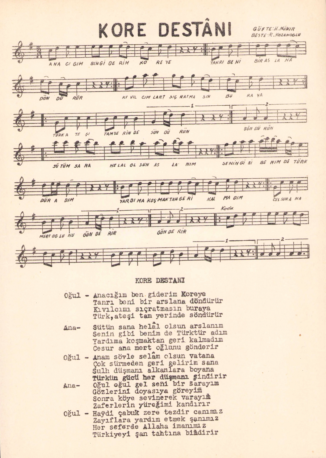 Kore Destanı, Marşı ve Notası, Güfte: .H. Münir, Beste: R. Kozan, 21x29cm