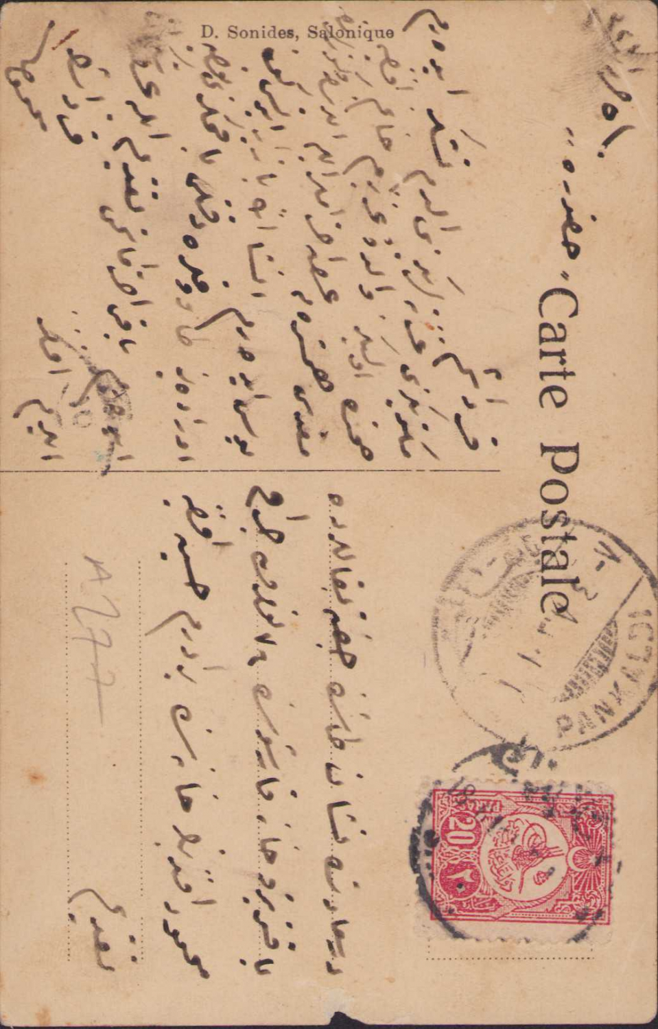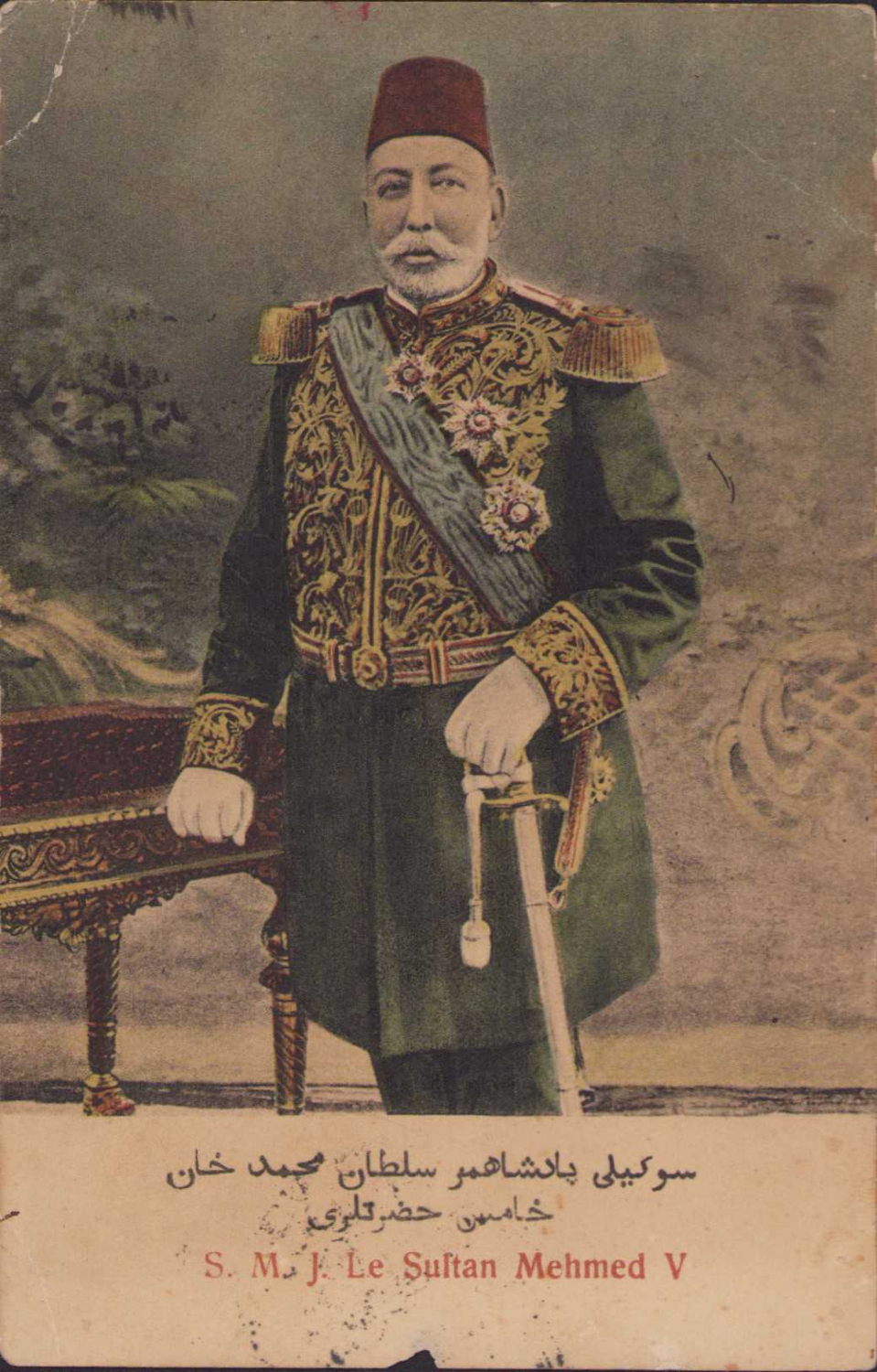 Sultan Reşat, postadan geçmiş, arkası osmanlıca yazılı, pullu, mühürlü, Nişantaşı adresli.