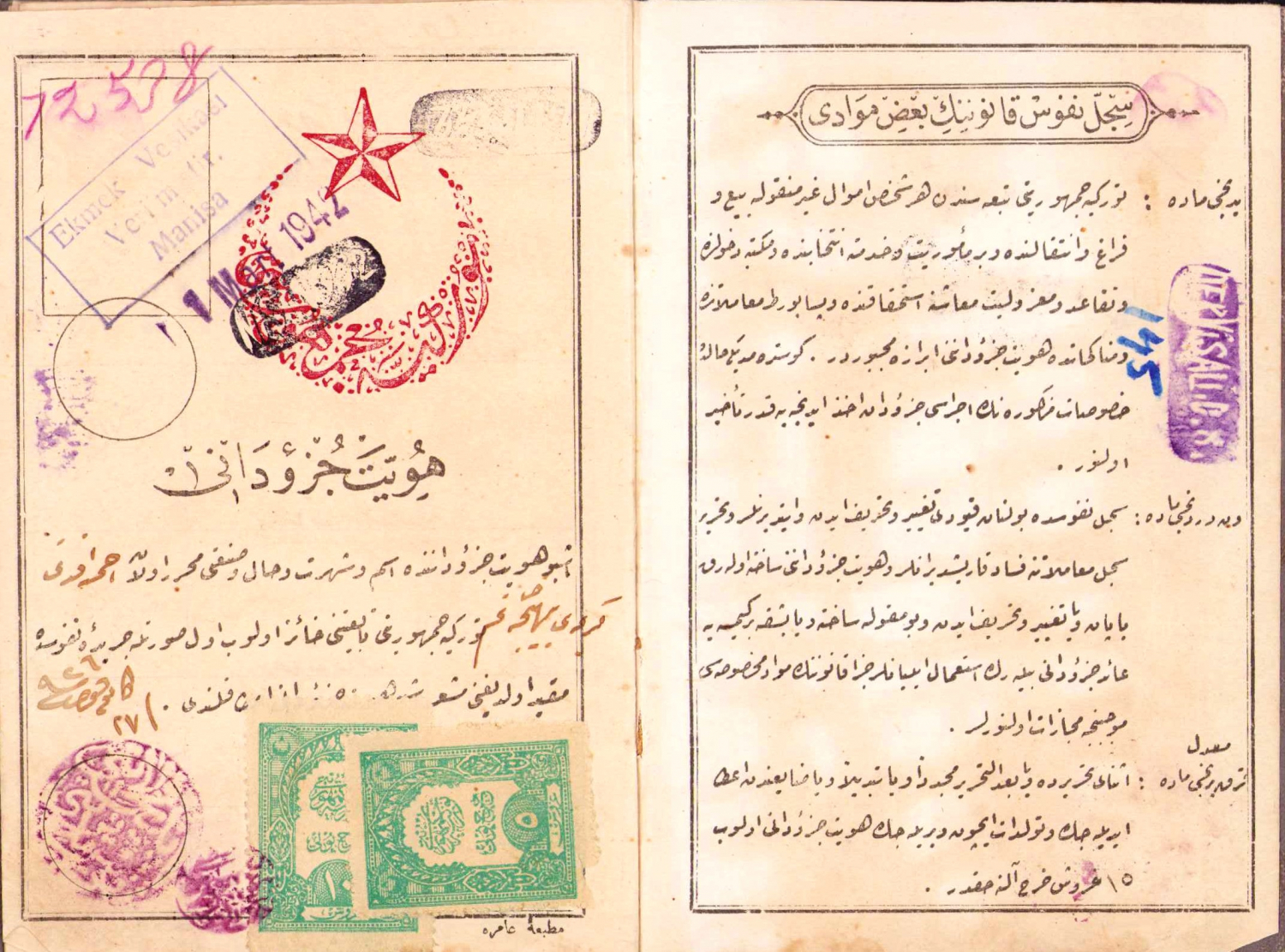 Osmanlı hüviyet belgesi, Matbaa-i Amire, pullu damgalı, 9x14cm