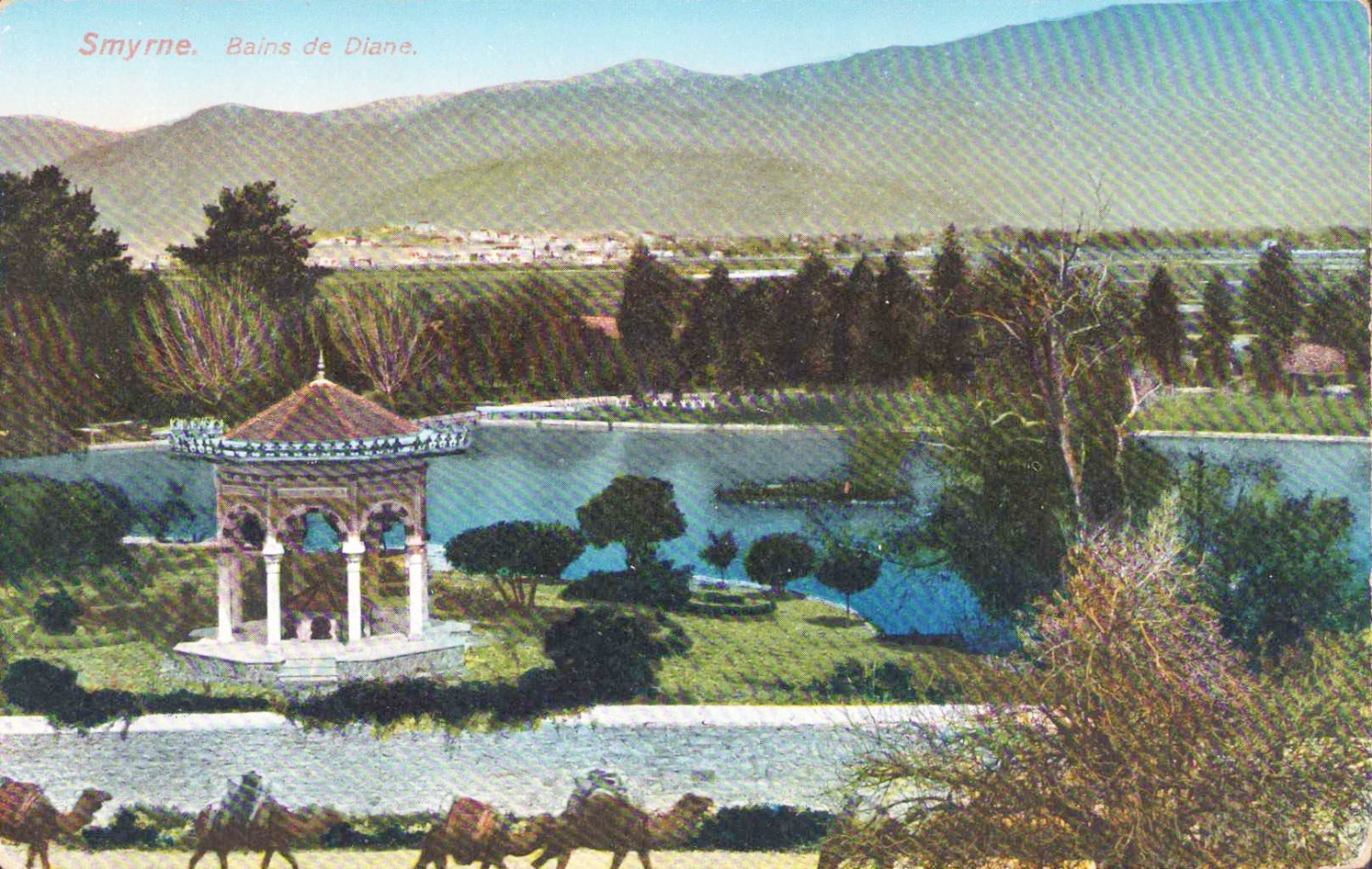 Smyrne, İzmir, Diana Banyoları (Halkapınar Çayı), editörS. Sarantopoulos, Smyrne, osmanlıca ithaflı, 1330 tarihli