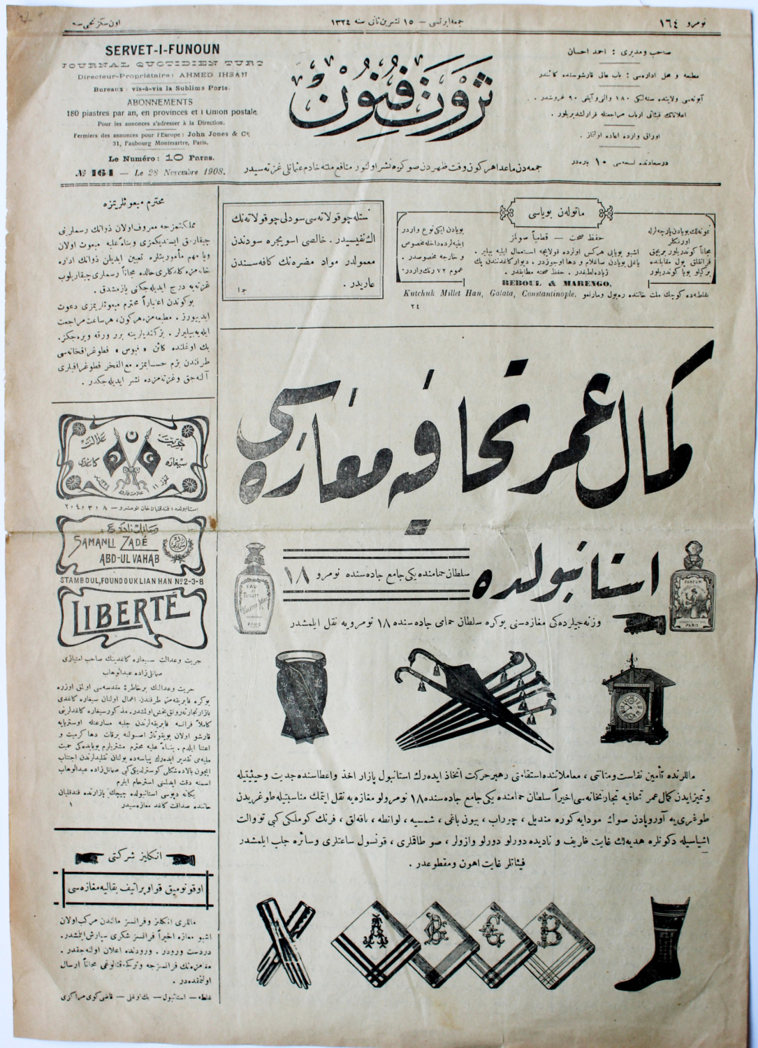 Serveti Fünun, Ahmet İhsan, 1334 tarihli, Kemal Ömer Tuhafiye Mağazası - İstanbul kapaklı, 33x46cm