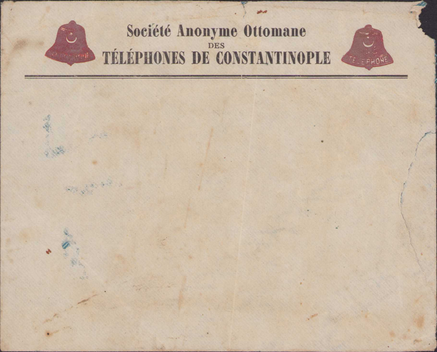 Societe Anonyme Ottomane des Telephones de Constantinople (Osmanlı limited şirketi)antetli, ay yıldız tasarımlı zarf