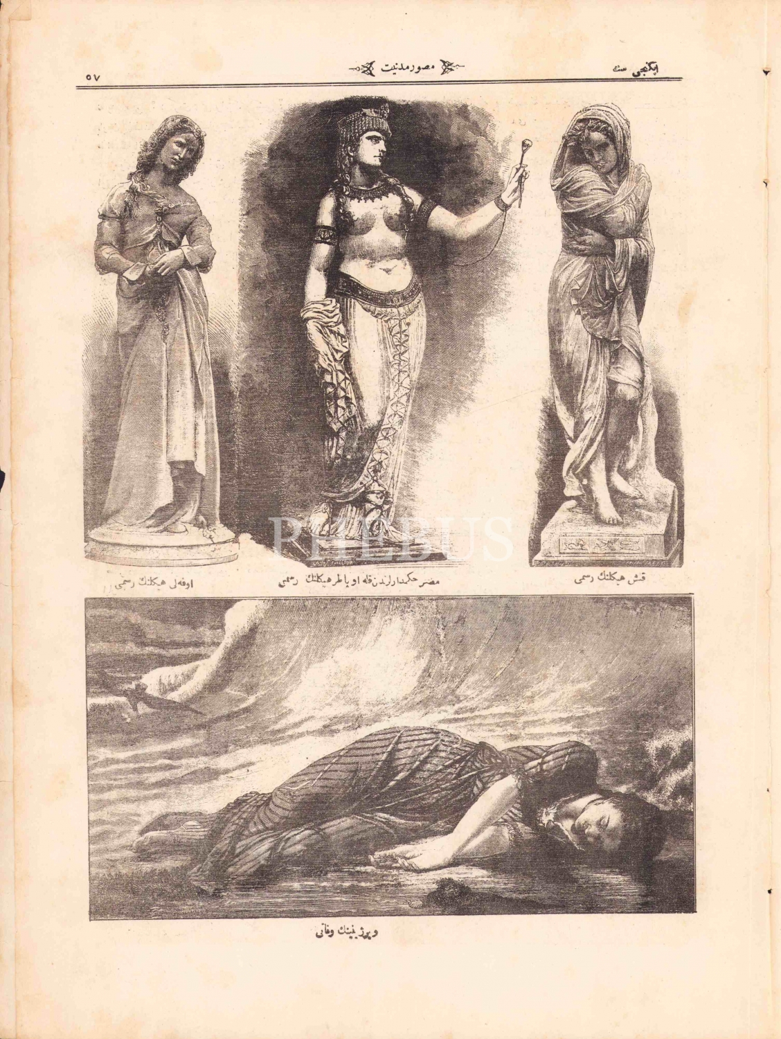 Osmanlıca Musavver Medeniyet, sahibi Arif Efendi, 1290, kapak [sağdaki] Şehzade Mecid Efendi, [Soldaki] Mehmed Şevket Efendi, resimli, sayfalar kopuk haliyle, 14 sayfa, 28x40 cm