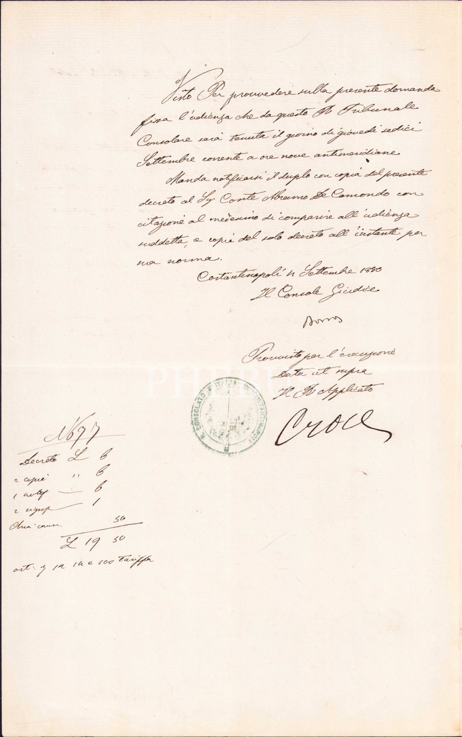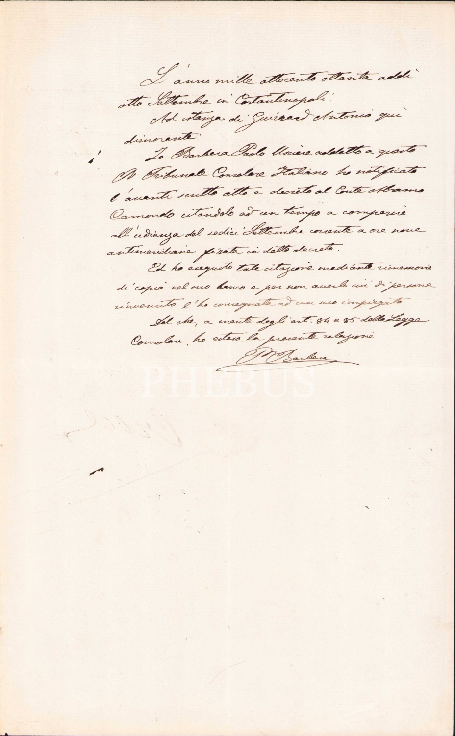 Fransızca doküman, 1880 tarihli, 3 sayfa, 20x33 cm