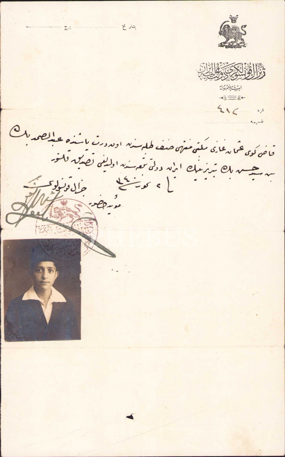 Osmanlıca, İran İstanbul Konsolosluğu Kadıköy Osman Gazi Mektebi talebesi Abdülsamedin İran tebasından olduğuna dair belge, 1340, 14x23 cm