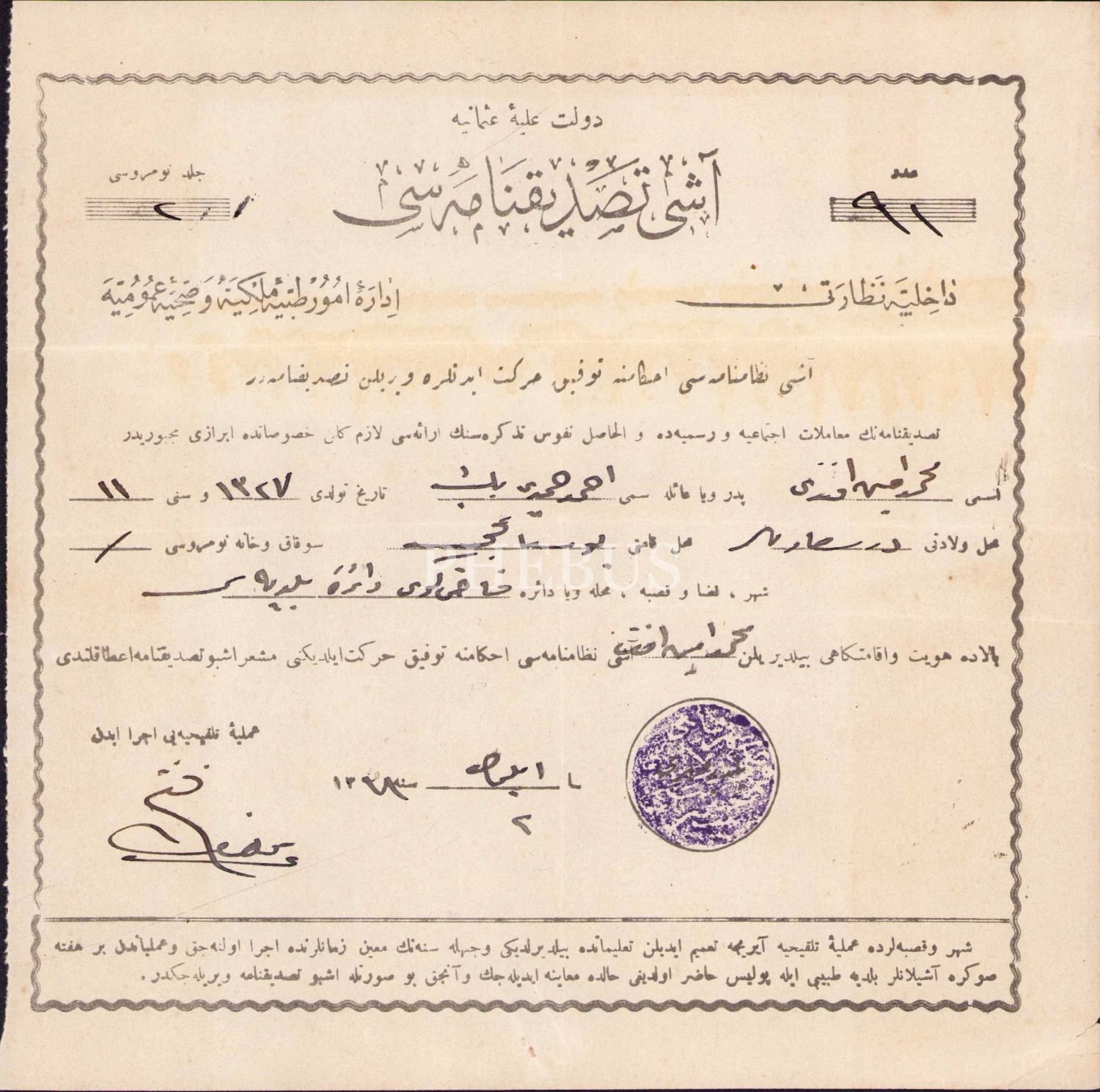 Osmanlı Devleti Aşı Tadiknamesi, 1328, 19x20 cm