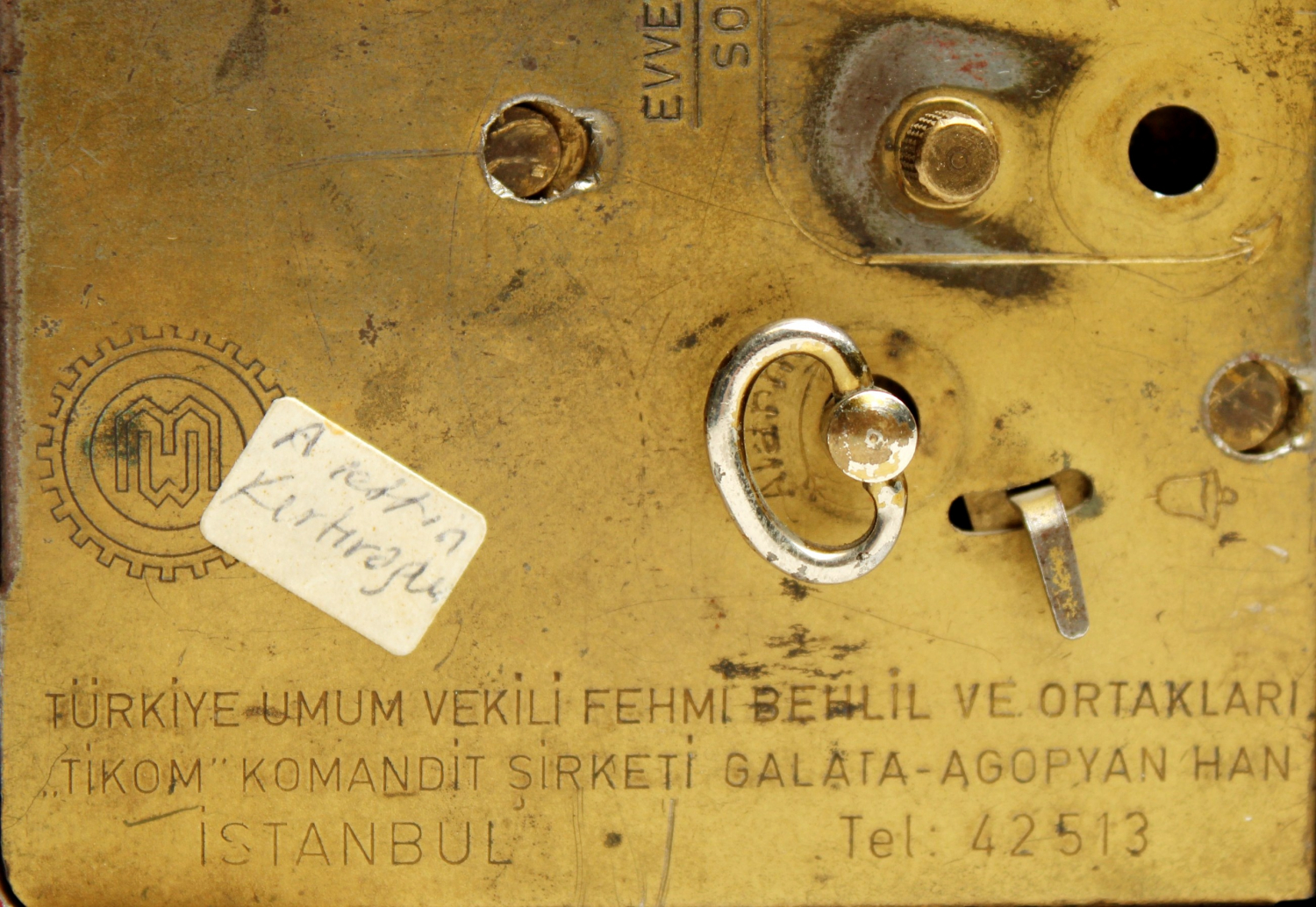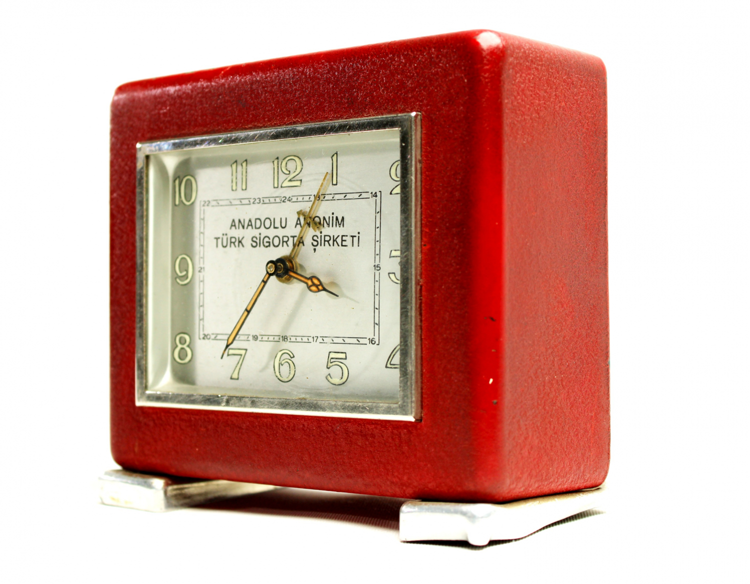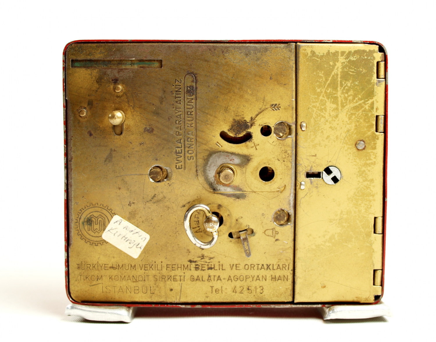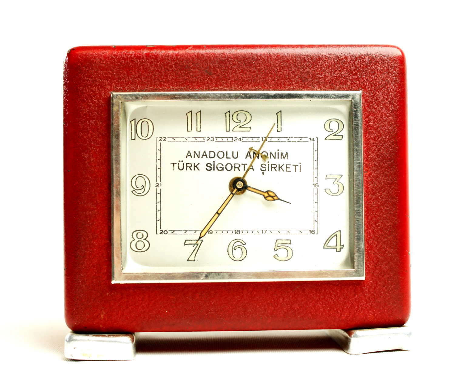 Anadolu Anonim Türk Sigorta Şirketi saat formunda kumbara, 11,5x10 cm