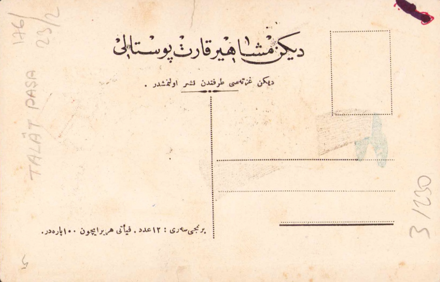 Diken Meşahir Kartpostalları Talat Paşa, Osmanlıca, haliyle