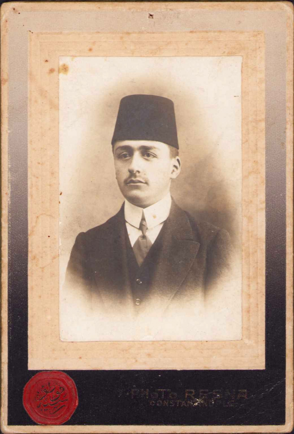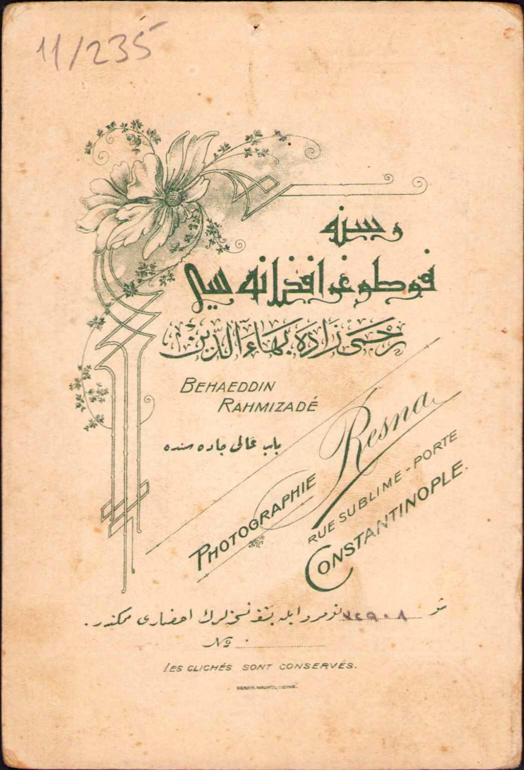 Stüdyo fesli beyefendi portresi, Photo Resna, Osmanlıca yazılı, 9x12cm