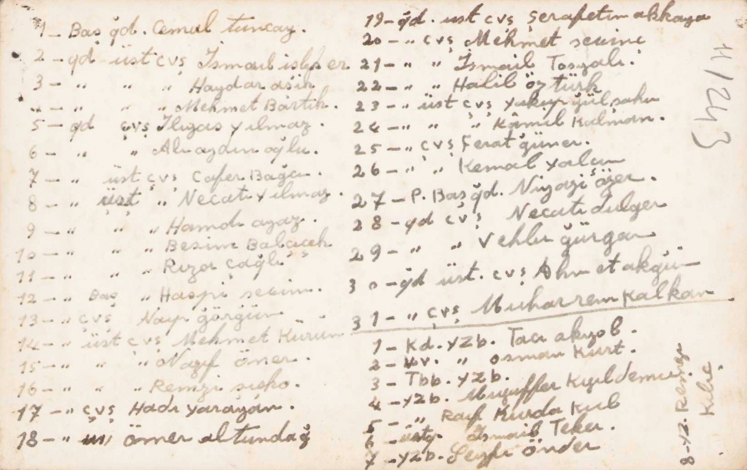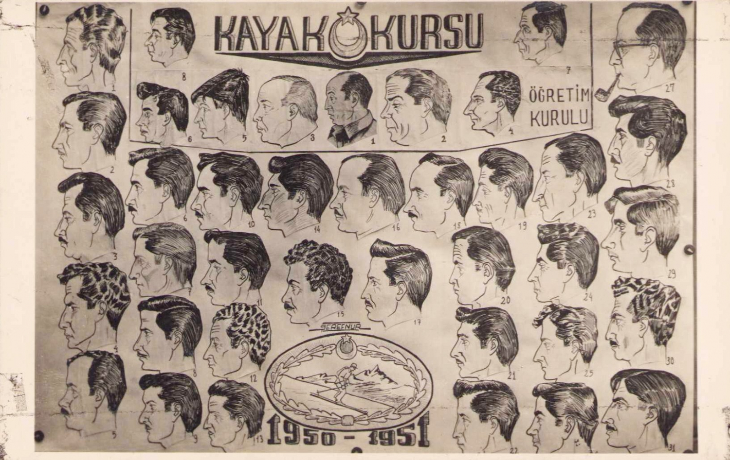 1950 - 1951 Kayak kursu öğretim kurulu kartı arkasında kurul üyeleri isimleri yazılı