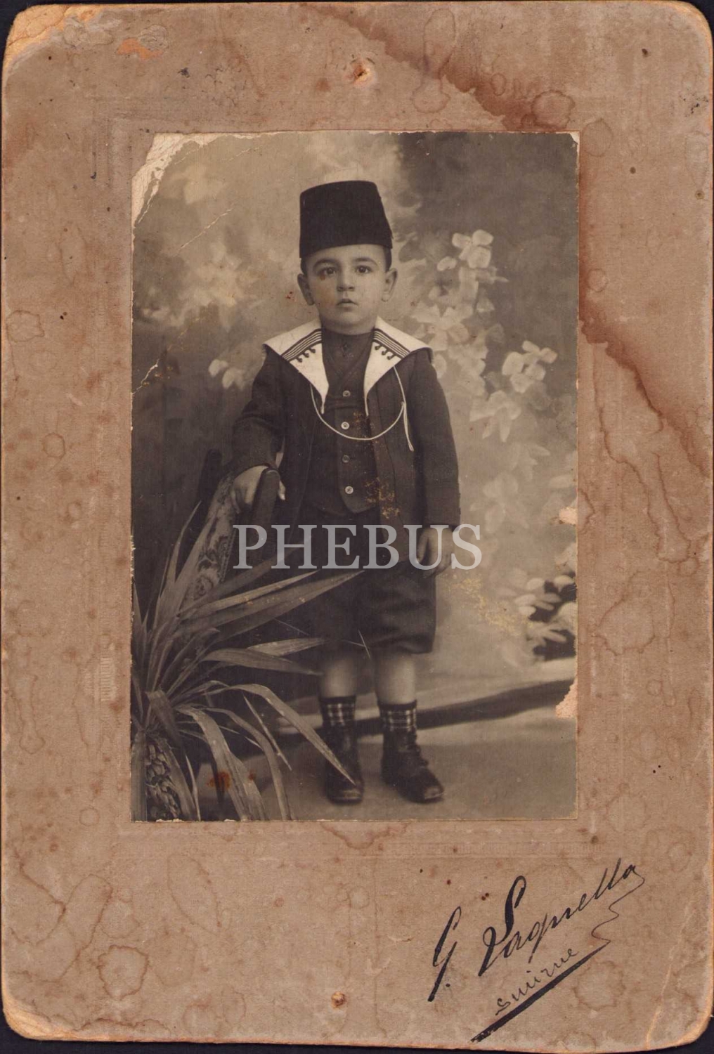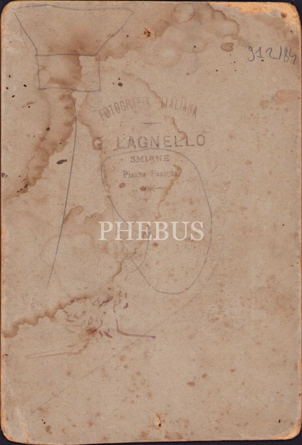 Osmanlı dönemi kabin fotoğrafı, Fotografia Italiana, G. Lagnello, Smirne, İzmir, arkası Osmanlıca ithaflı.