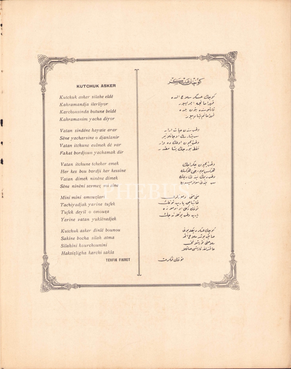 "Küçük asker silah elde/ Kahramanca ilerliyor/Karşısında bütün belde/'Kahramanım çok yaşa' diyor"