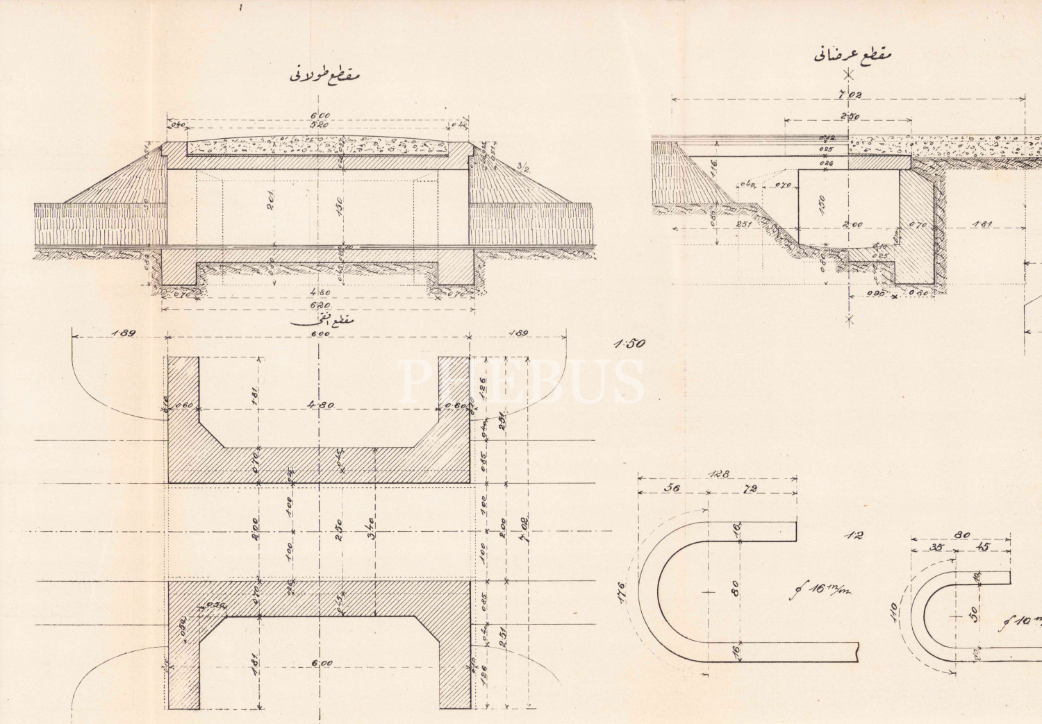Osmanlıca Türkiye Cumhuriyeti Nafia Vekaleti Yollar Müdiriyeti Umumiyesi'ne ait Betonarme imalat sanayi tipleri, katlamalı 4 yaprak, 21x30cm