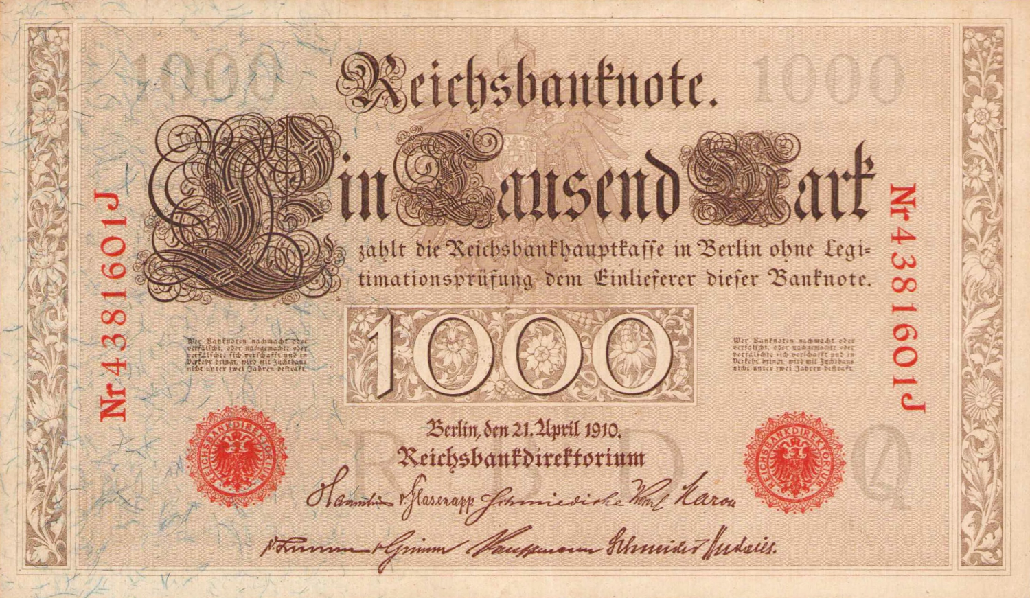 Alman kağıt parası, 1910 tarihli, 18x10cm