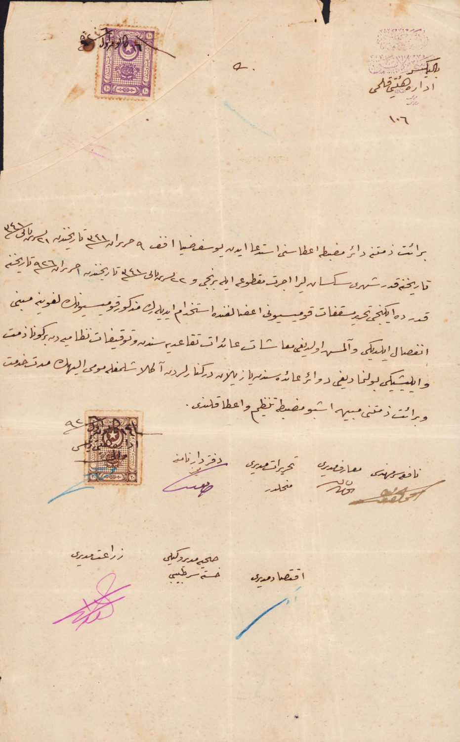Balıkesi İdari heyeti kalemi, Beraet zimmetine dair zimmet mazbatası, ıslak imzalı, pullu damgalı, haliyle, 34x21cm
