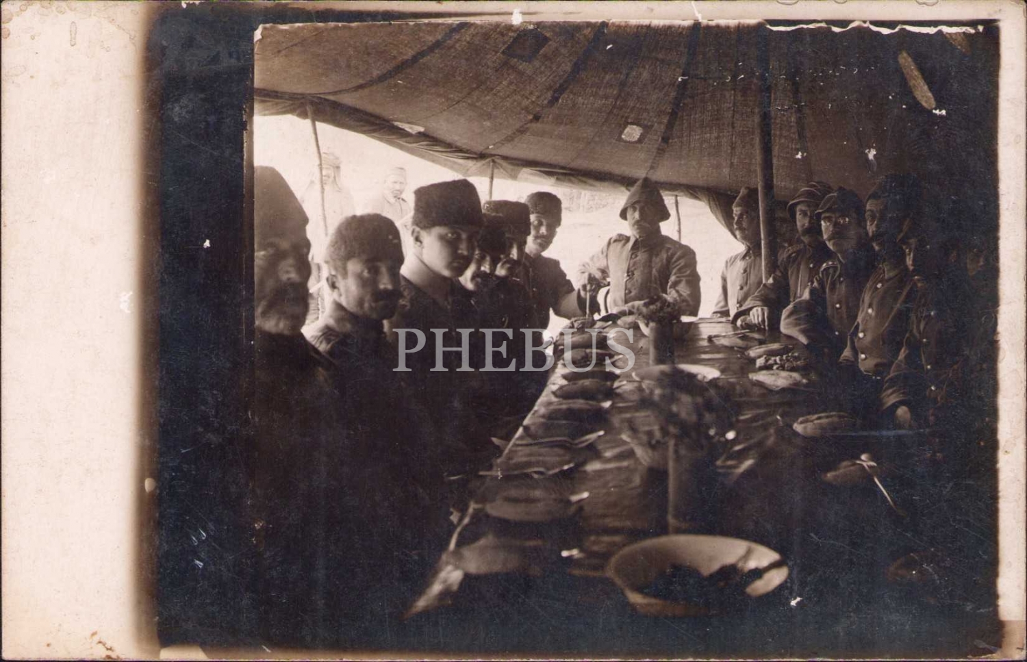 Birinci Cihan Harbi'nde Çanakkale Savaşı Komutanı Esat Paşa ve Osmanlı subayları sofra başında.