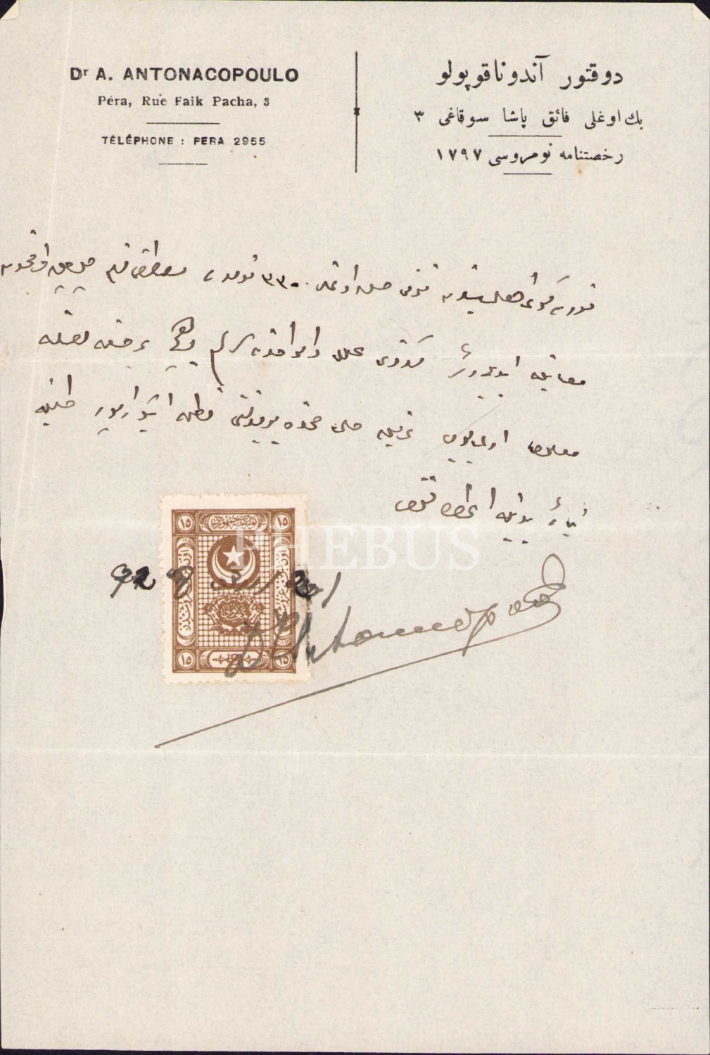 Doktor Antonacopoulo antetli Osmanlıca muayene raporu, 13x19 cm