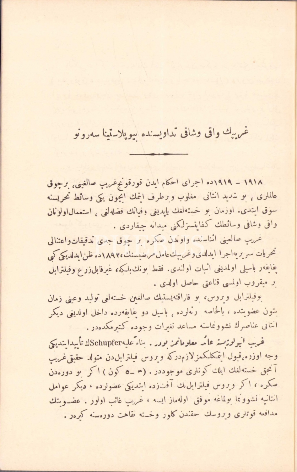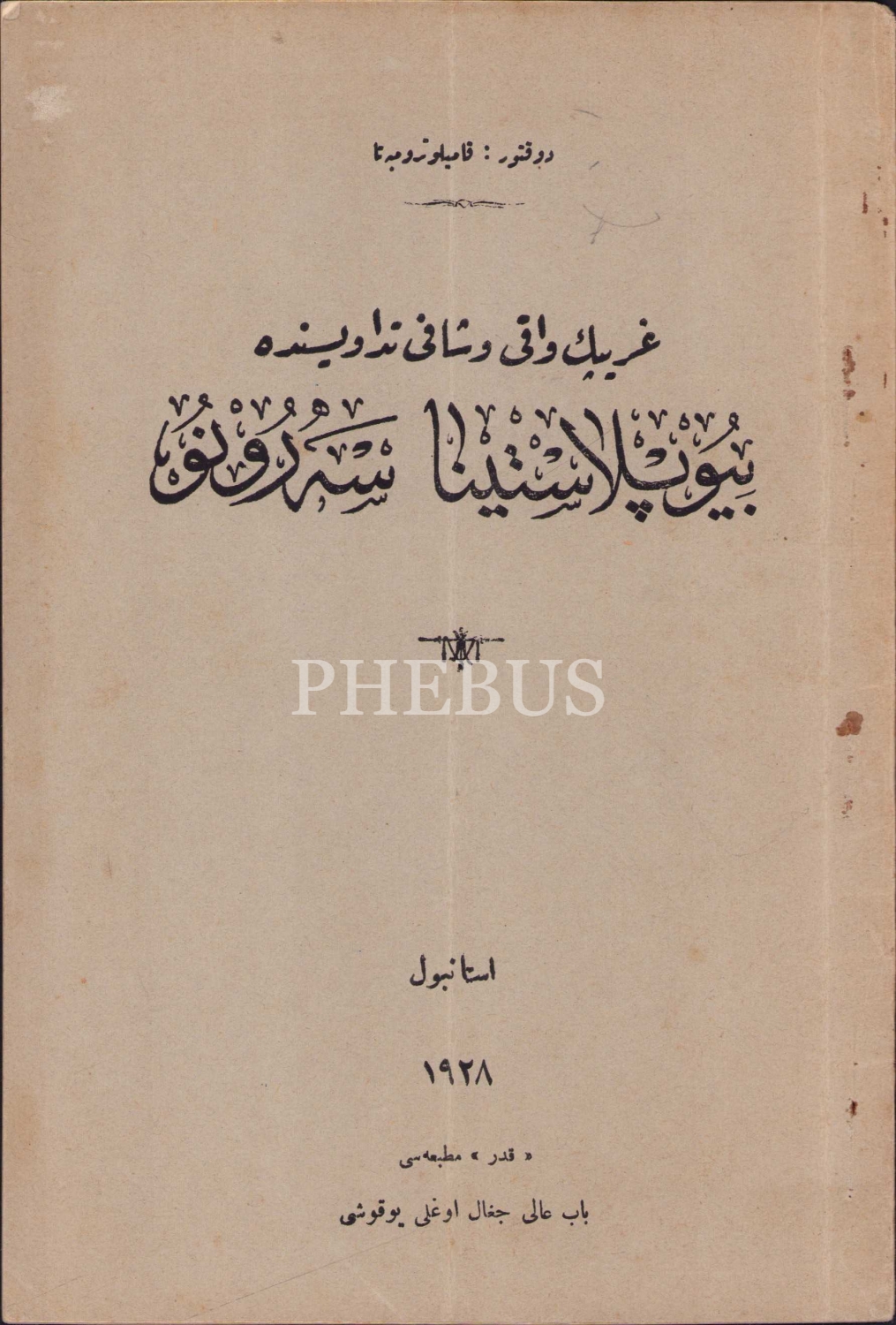 Gribin Vaki ve Safi Tedavisinde Biyoplastina Seronu, Doktor: Kamilo Troceta, İstanbul, 1928 tarihli, Kader Matbaası, 21 sayfa, damgalı ve pullu, 15x22 cm