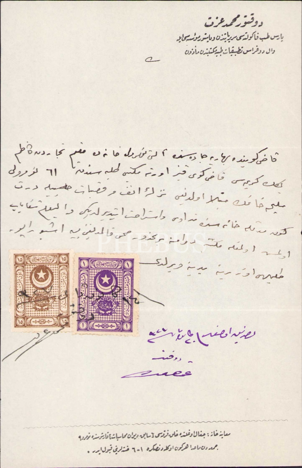 Cağaloğlu'nda Paris Tıp Fakültesi Mezunu Doktor Mehmed İzzet antetli, Osmanlıca tedavi raporu, Kadıköy Kız Orta Mektebi Öğrencisi Selime Hanım'ın nezle hastalığı ile ilgili, 1928 tarihli, 12x19 cm