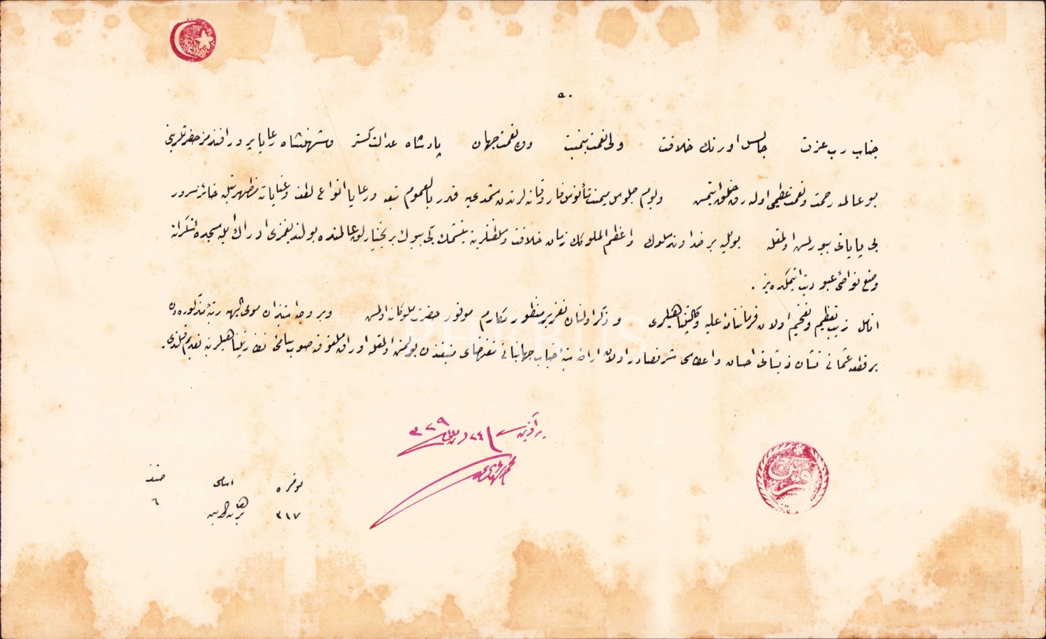 Burhaneddin isimli ikinci sınıf talebesine verilmiş, bir kıt'a Osmani Nişanı Aferin belgesi, Osmanlıca, 'Aferin' damgalı, 1329 tarihli, 32,5x20 cm