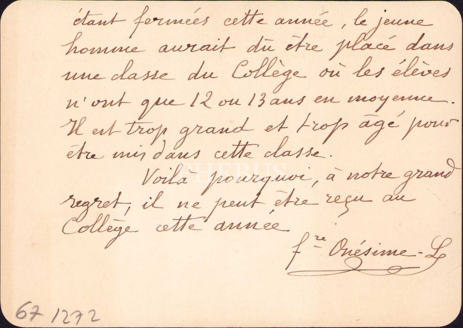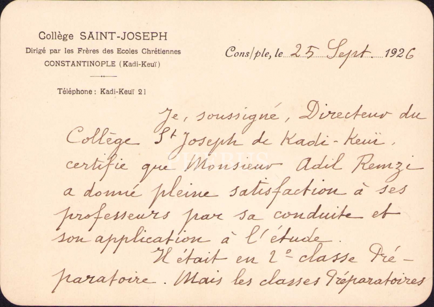 Kadıköy Saint Joseph Lisesi antetli Fransızca belge, 1926 tarihli, 14x10 cm