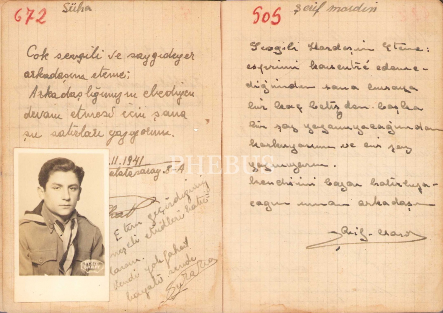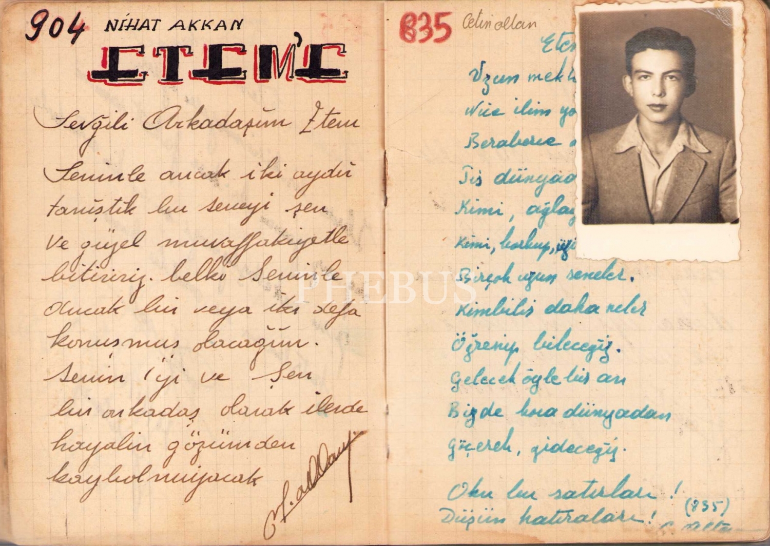 Şerif Mardin ve Çetin Altan'ın da el yazılarıyla notlarının bulunduğu Etem isimli Galatasaray Lisesi öğrencisinin hatıra andacı, 1941-1942 tarihli, 82 sayfa, 10x15 cm