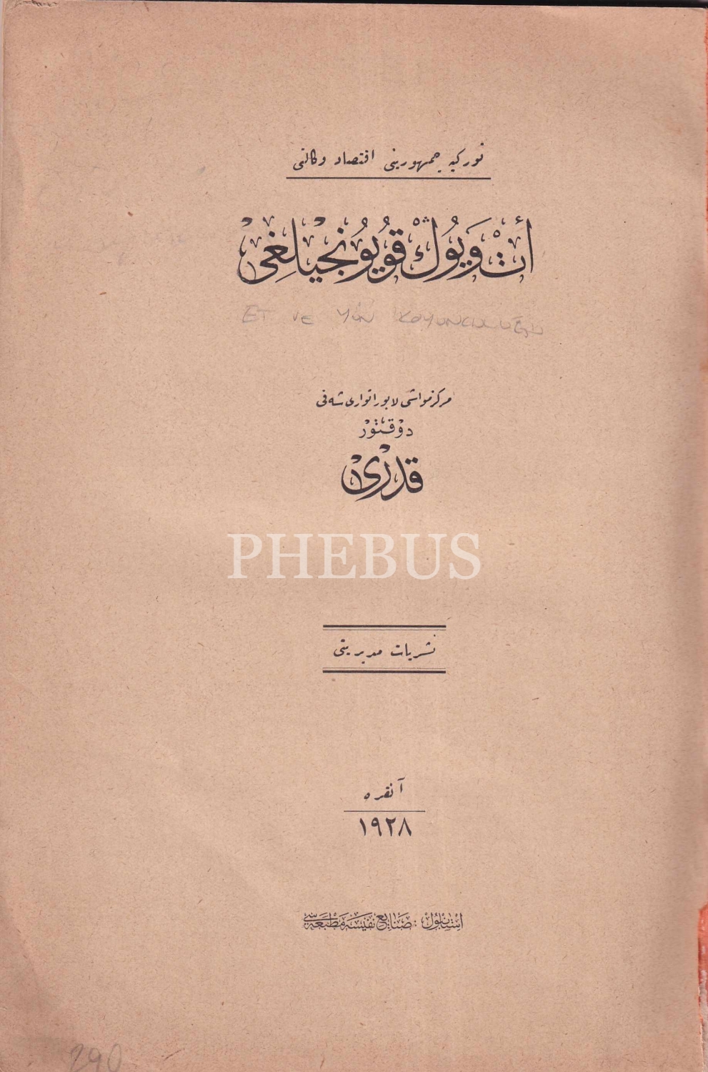 Osmanlıca Et Ve Yün Koyunculuğu, Doktor Kadri, Sanayi-i Nefise Matbaası, İstanbul, 1928, resimli, kapak kenarlar haliyle, 150 sayfa, ÖZEGE; 5231