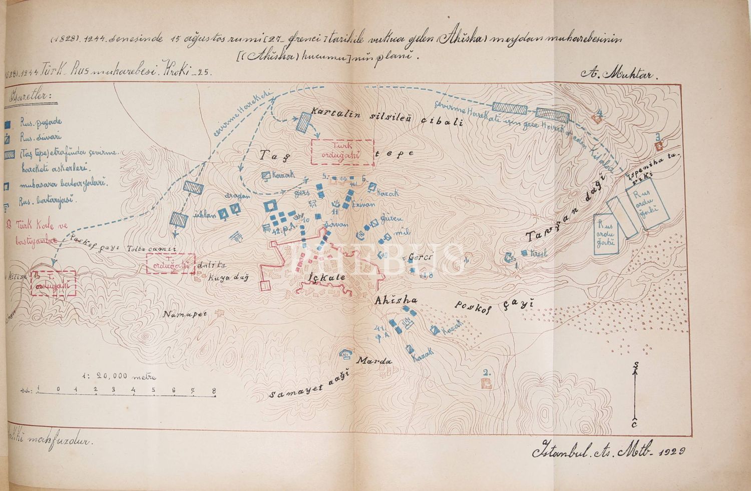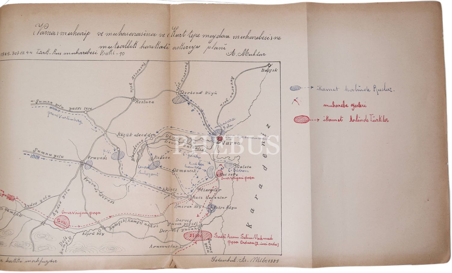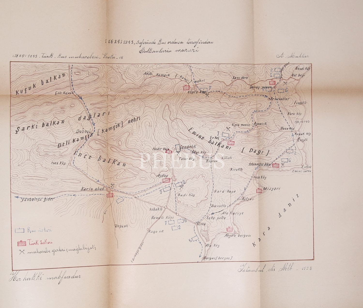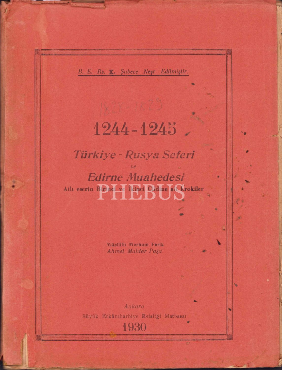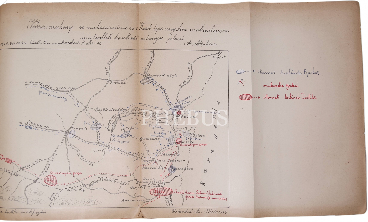 1244 - 1245 Türkiye - Rusya Seferi ve Edirne Muahedesi Adlı eserin Birinci ve İkinci Cildine ait Krokiler, müellifi Ahmet Muhtar Paşa, Büyük Erkanı Harbiye Reisliği Matbaası, Ankara, 1930, 30 adet,