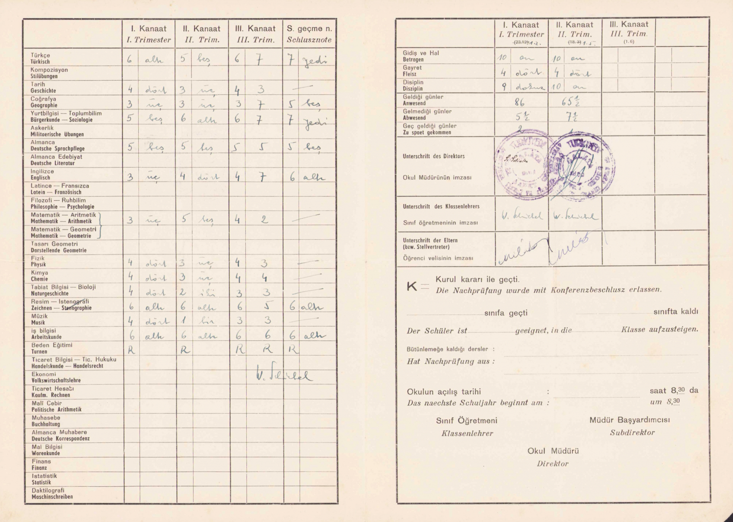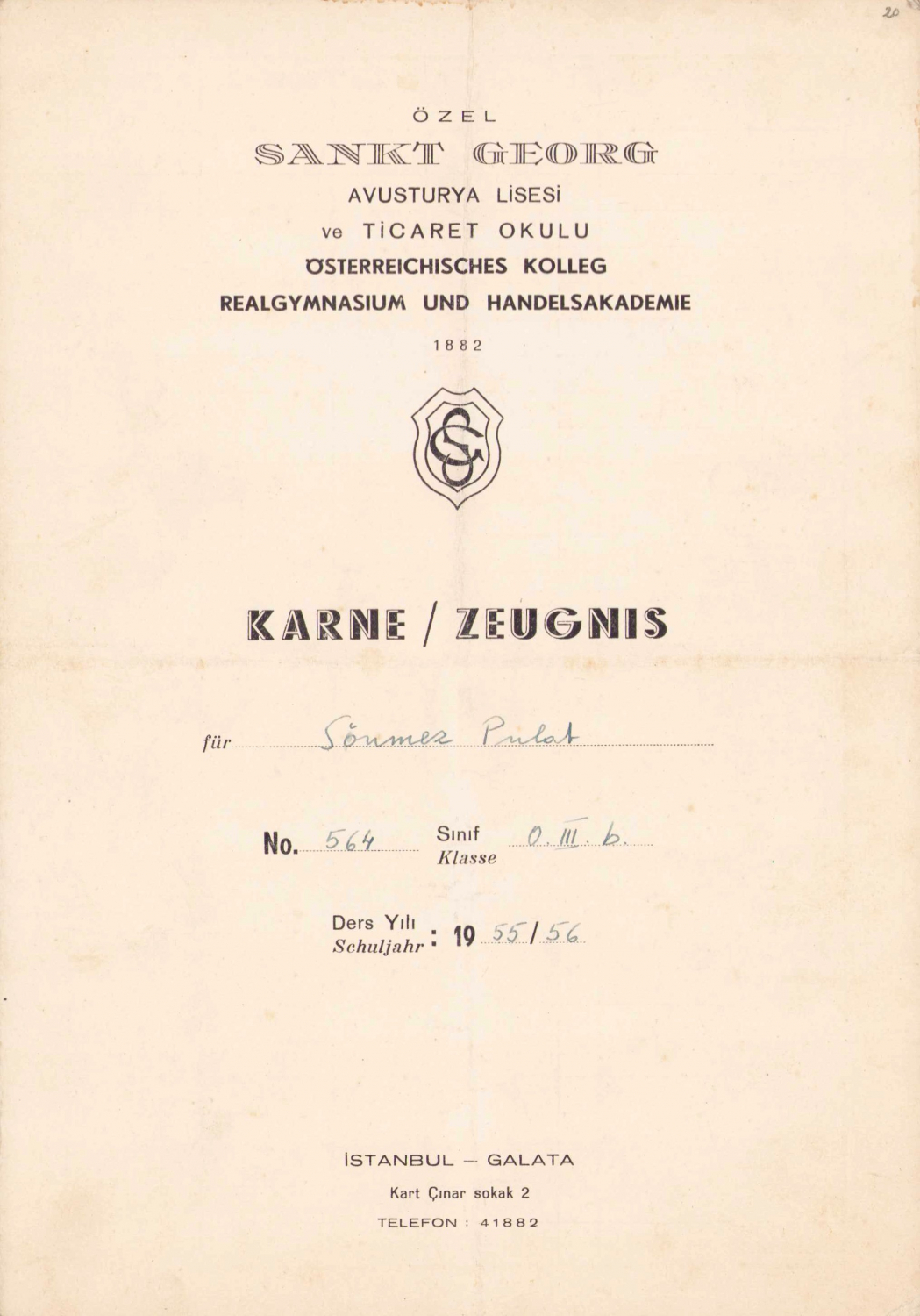 Özel Sankt Georg Avusturya Lisesi ve Ticaret Okulu öğrenci karnesi, İstanbul - Galata, 17x25cm