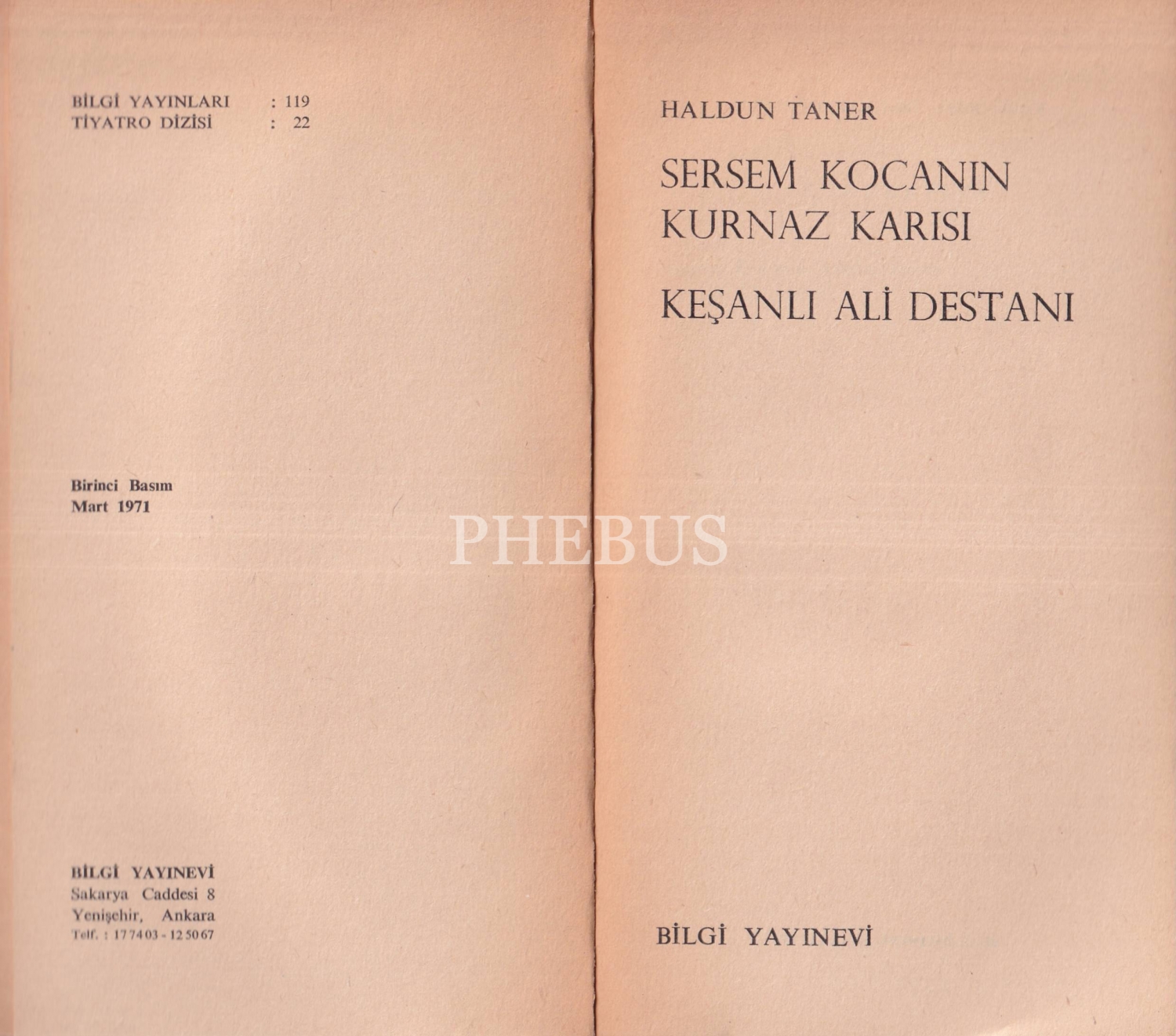 Keşanlı Ali Destanı - Sersem Kocanın Kurnaz Karısı, Haldun Taner, birinci baskı, Ankara, 1971, 223 sayfa, 10x18 cm