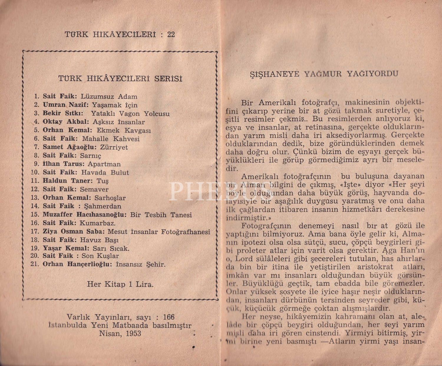 Şişhaneye Yağmur Yağıyordu, Haldun Taner, İstanbul Yeni Matbaa, 1953, 115 sayfa, 11x15 cm