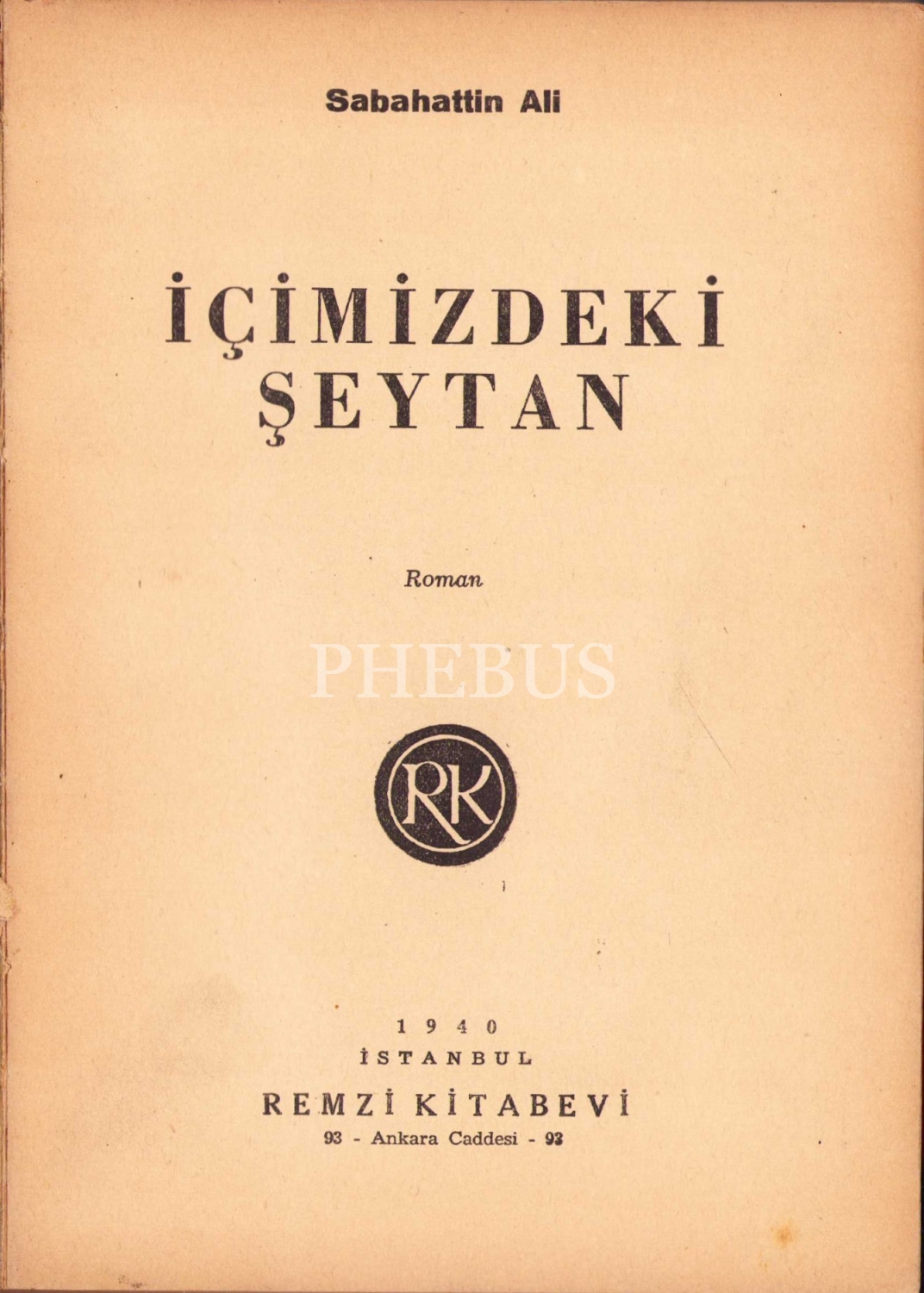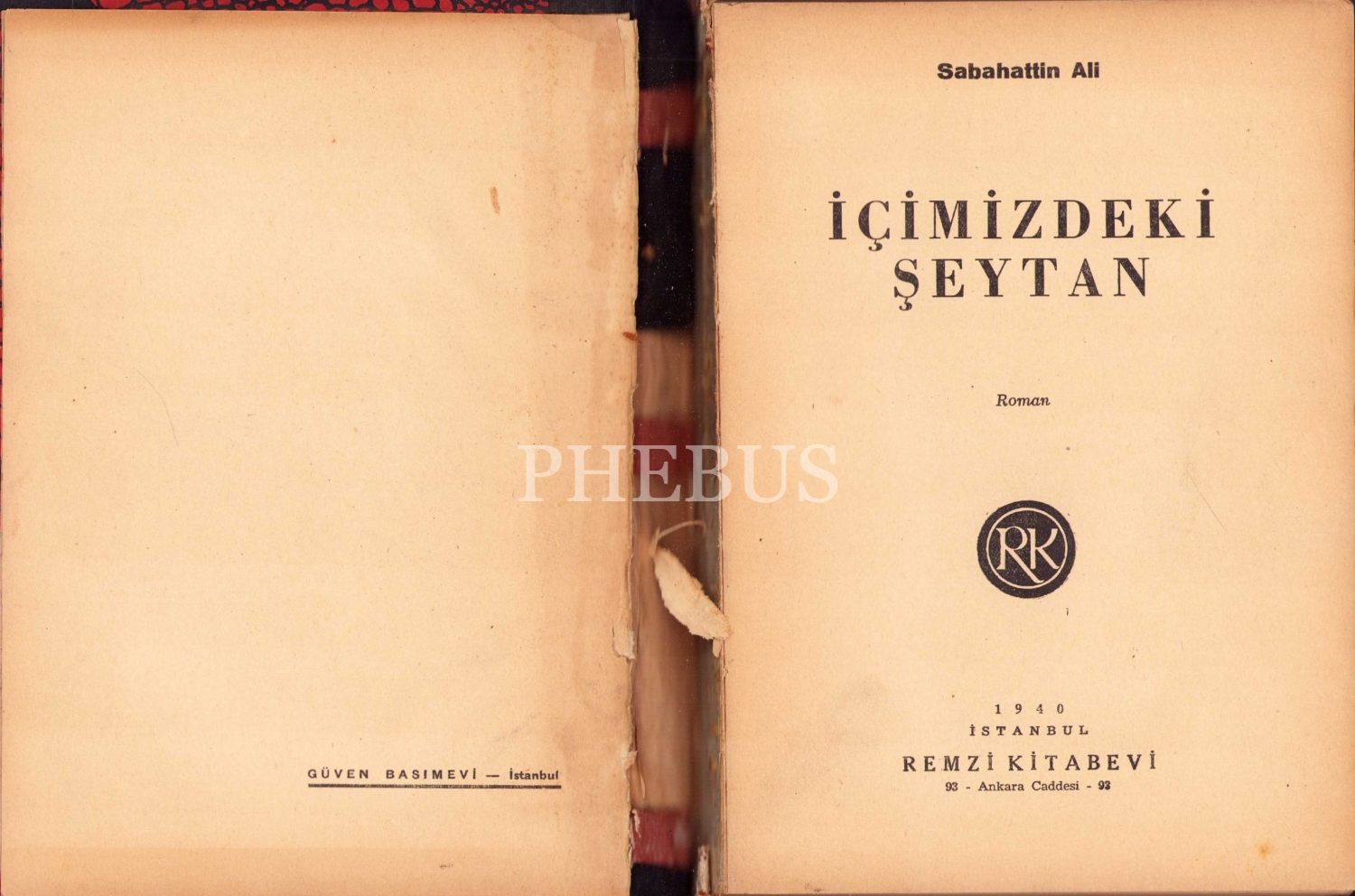 İçimizdeki Şeytan, Sabahattin Ali, Güven Basımevi, İstanbul, 1940, sayfalar ciltten kopuk, 302 sayfa, 14x20cm