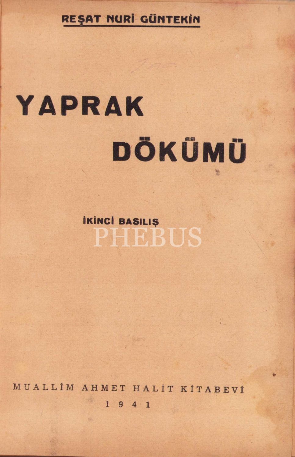 Yaprak Dökümü, Reşat Nuri Güntekin, ikinci baskı, Muallim Ahmet Halit Kitabevi, 1941, 130 sayfa, 13x19 cm