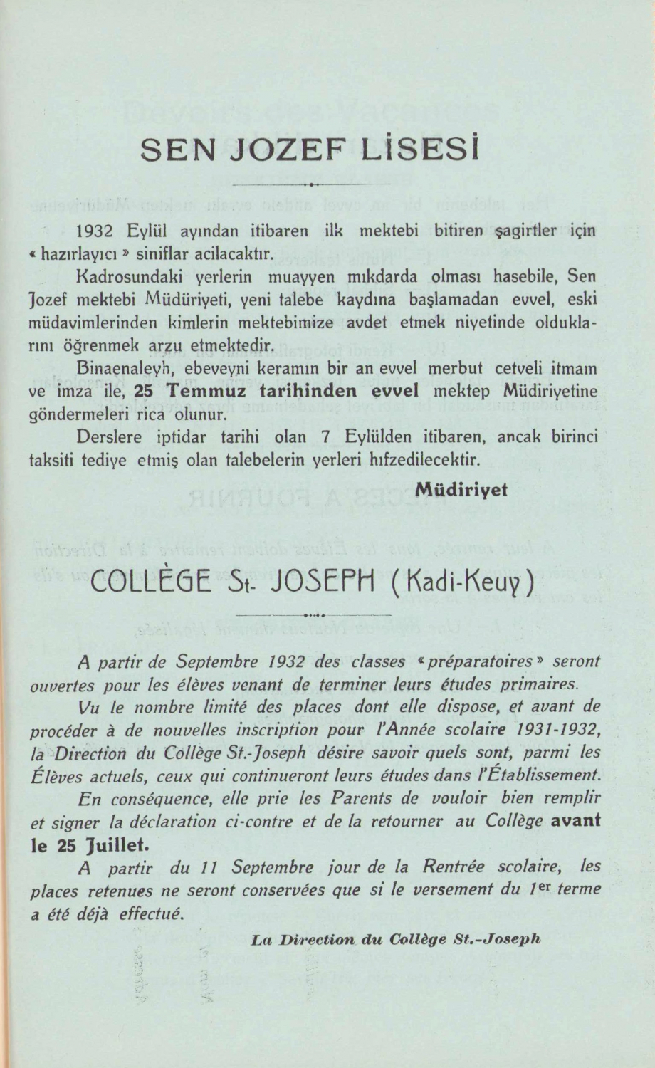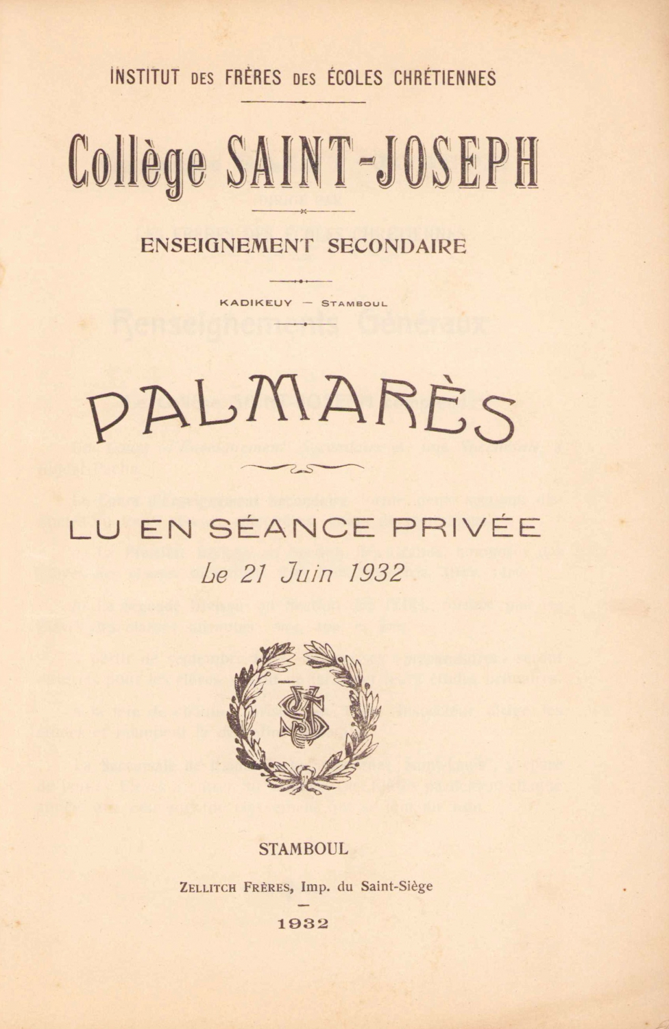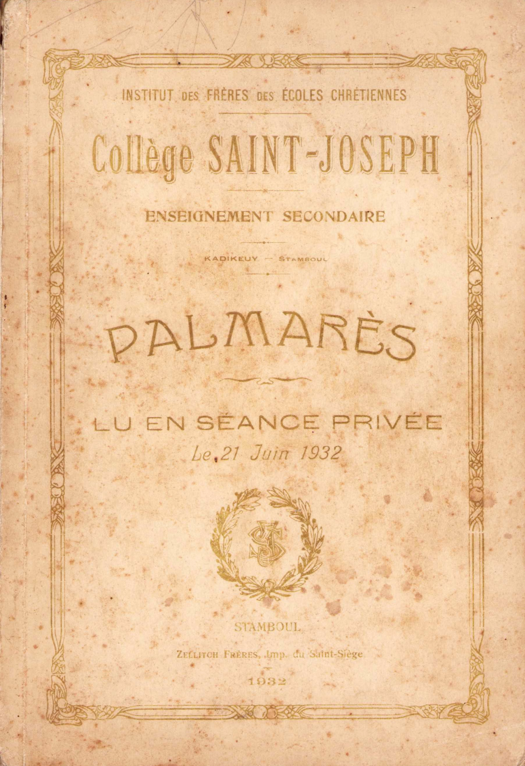 Palmares, Saint Joseph Koleji 1932 yılına ait yıllık, Kadıköy - İstanbul, 83 sayfa, 15x23cm, arka kapak yok