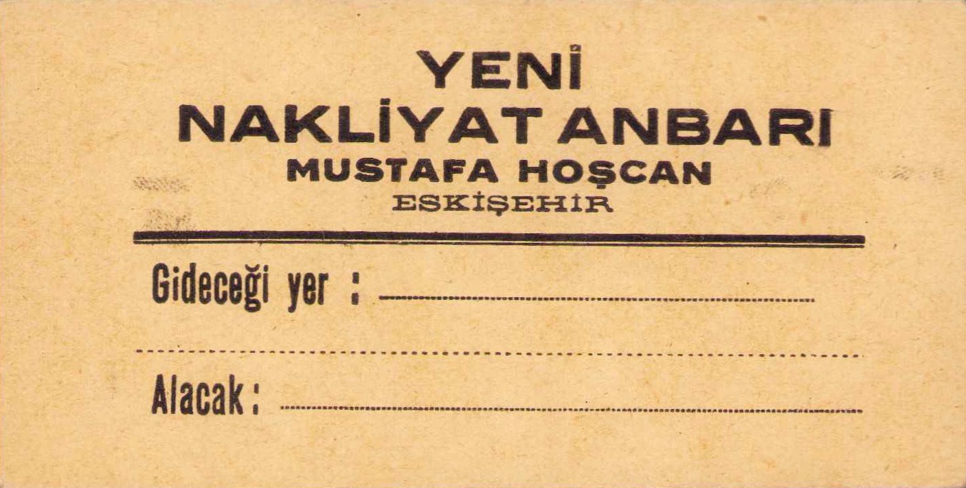 Anbar fişi, Yeni Nakliyat Anbarı Mustafa Hoşcan, Eskişehir, 12x6cm