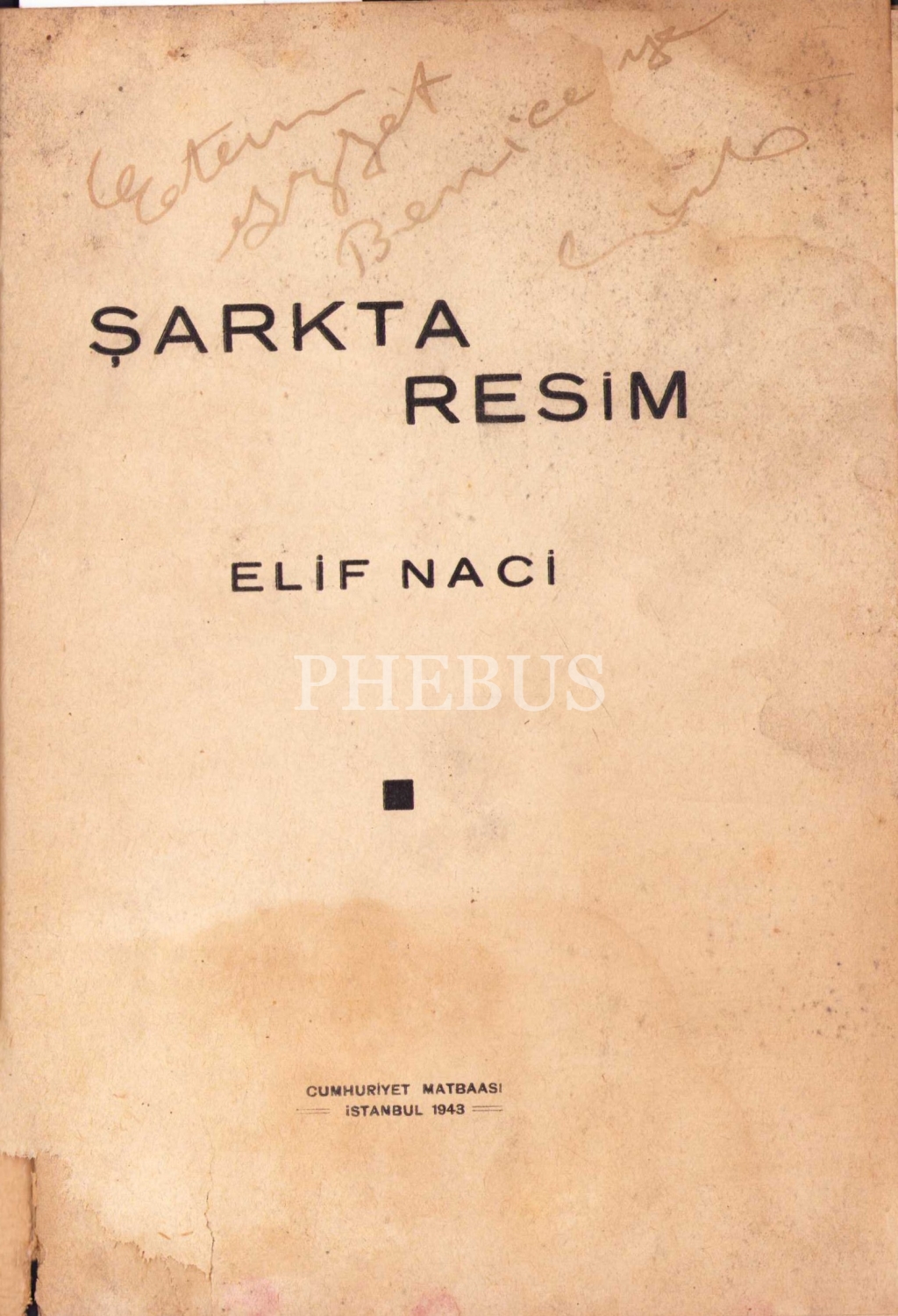 Şarkta Resim, D Grubu'nun Kurucularından olan Ressam Elif Naci'den Etem İzzet Benice'ye imzalı ve ithaflı, 25 sayfa, kapak haliyle, İlk Baskı, 1943.
