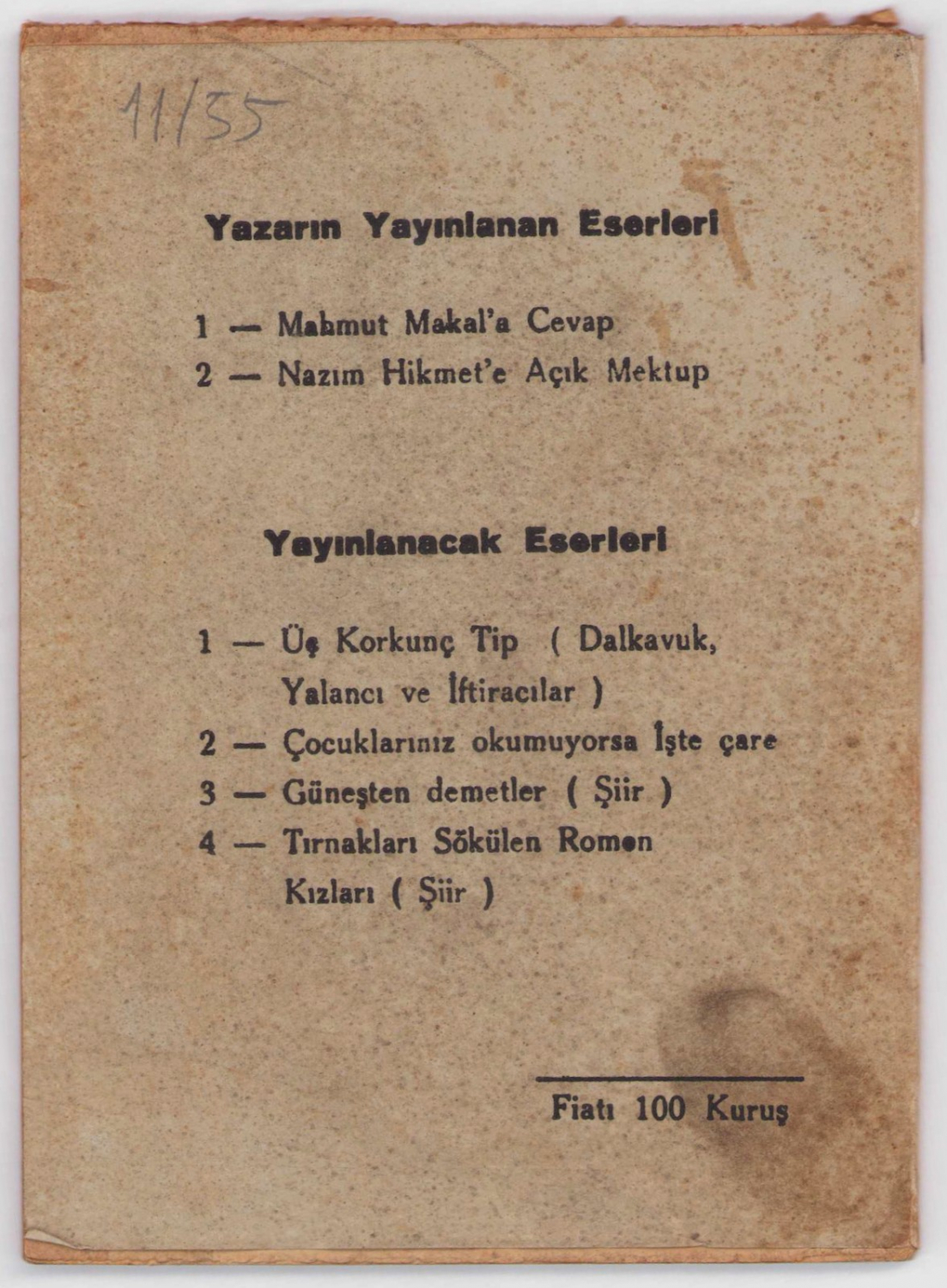 Çocukları Kötü Huydan Kurtarma Yolları, Kazım Özcan, Ahali Matbaası, Samsun, 1953, 80 sayfa, 12x16cm