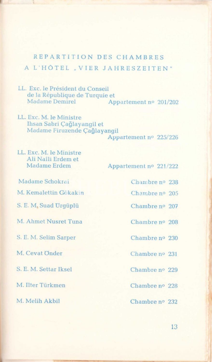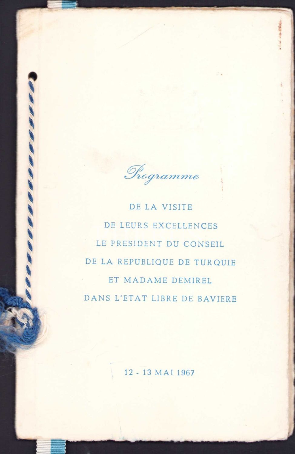 Türkiye Cumhuriyeti Meclis Başkanı ve Madame Demirel'in Bavyera ziyaret programı, 12 - 13 Mayıs 1967, Fransızca, 15 sayfa, 10x16 cm