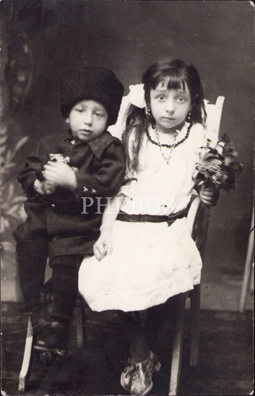 Osmanlı dönemi kalpaklı üniformalı erkek çocuk ve kız çocuğu, Osmanlıca ithaflı