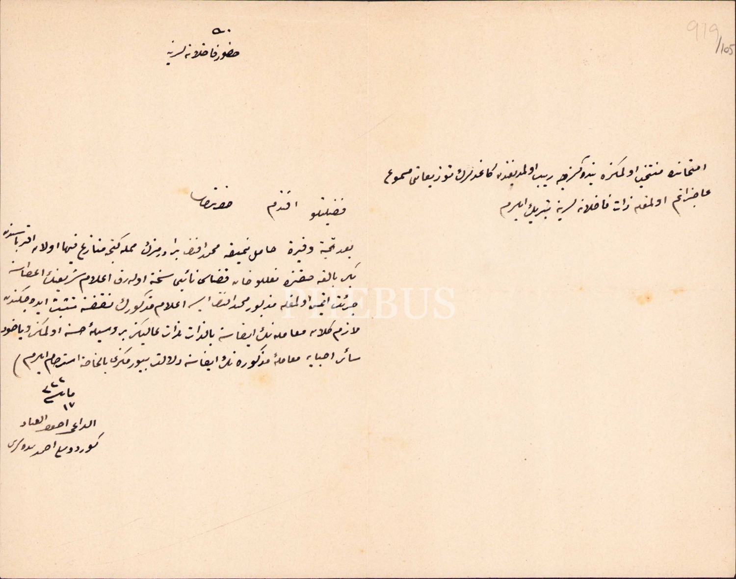 Osmanlıca Namlıhan kazası Mehmed Efendi akrabalarının yeterlilik yani aklı beliğ olup olmadıkları hakkında, Nallıhan, 1322, 12x20 cm