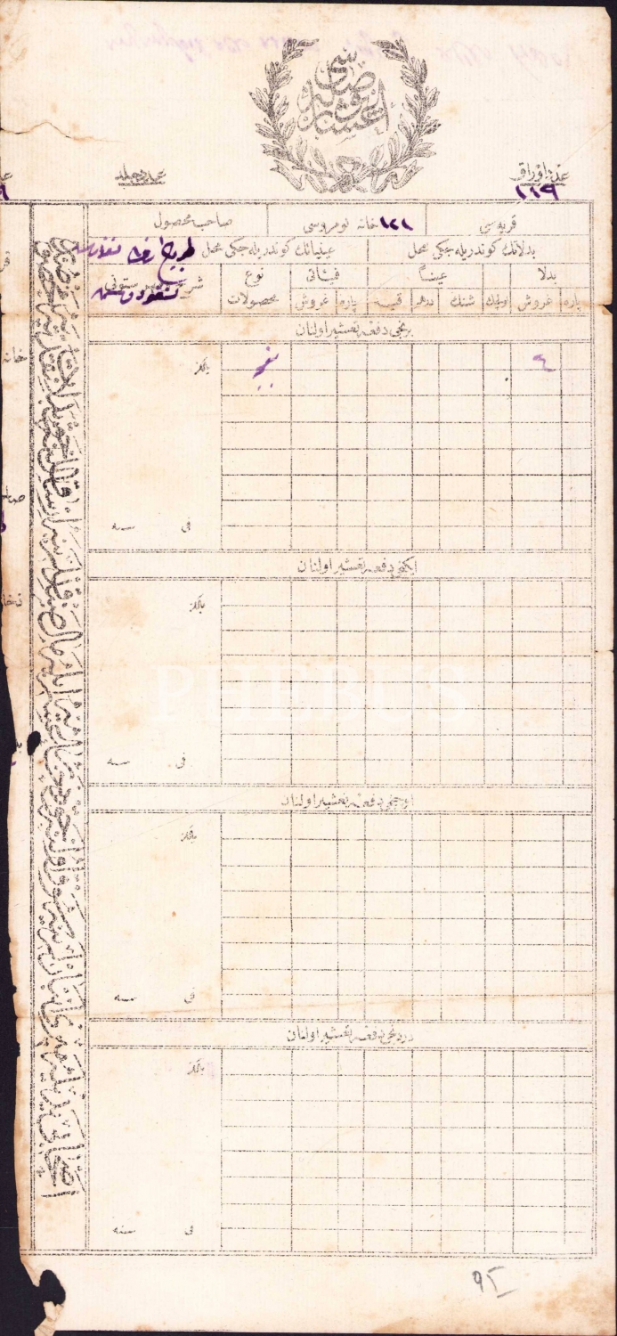 Osmanlıca Aşar pusulası, 16x35 cm