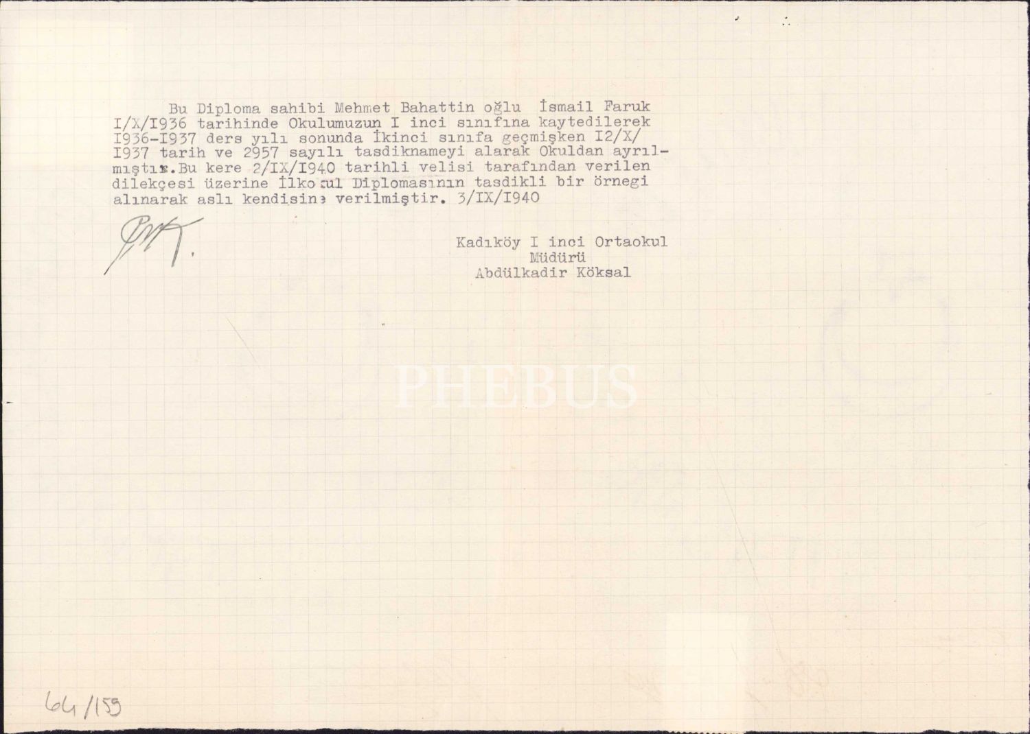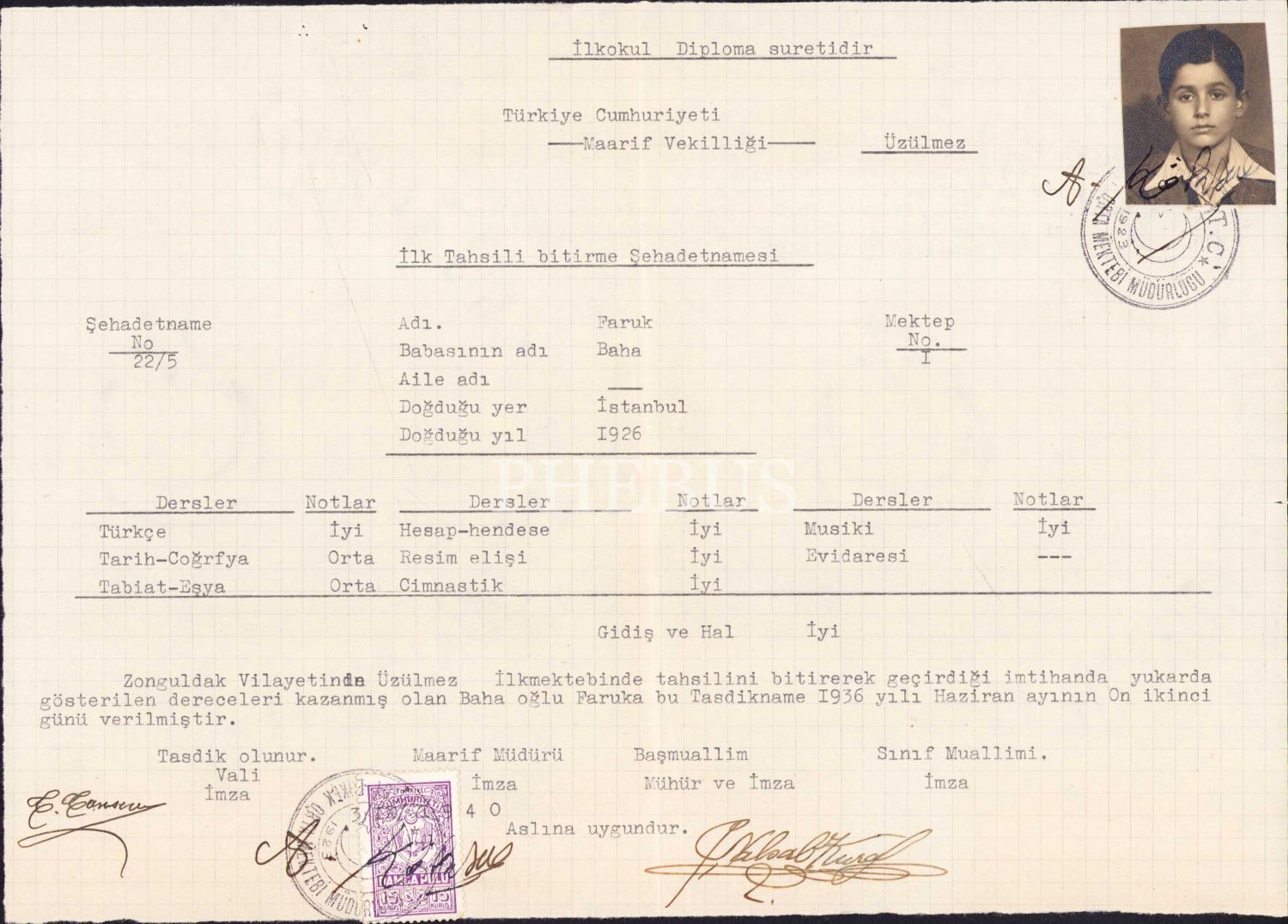 Zonguldak Üzülmez İlkokul Diploma sureti,1936, 28x21 cm