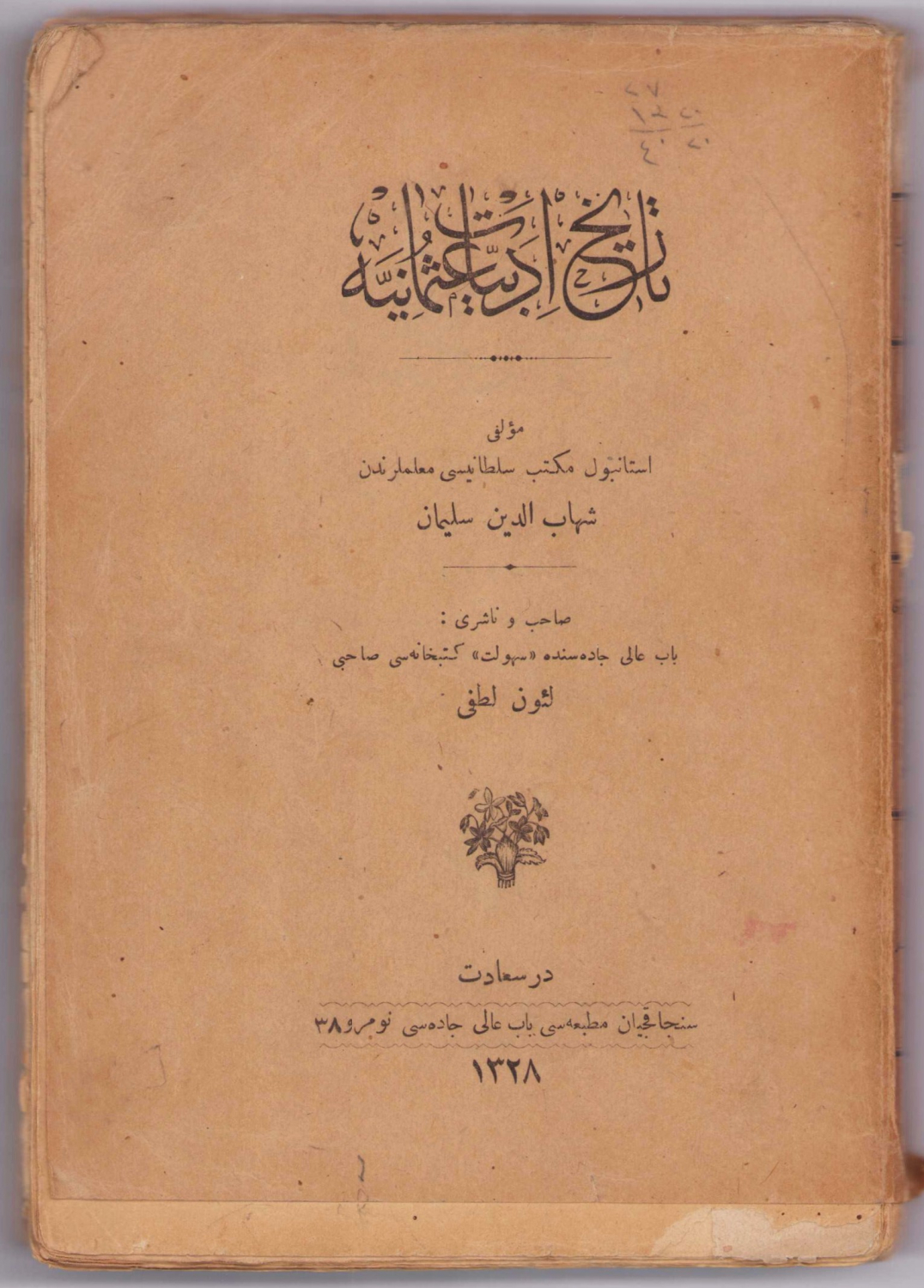 Tarih-i Edebiyyat-ı Osmaniye, Şahabeddin Süleyman, Sancakçıyan Matbaası, Dersaadet, 1328, Osmanlıca, 378 sayfa, 14x20cm