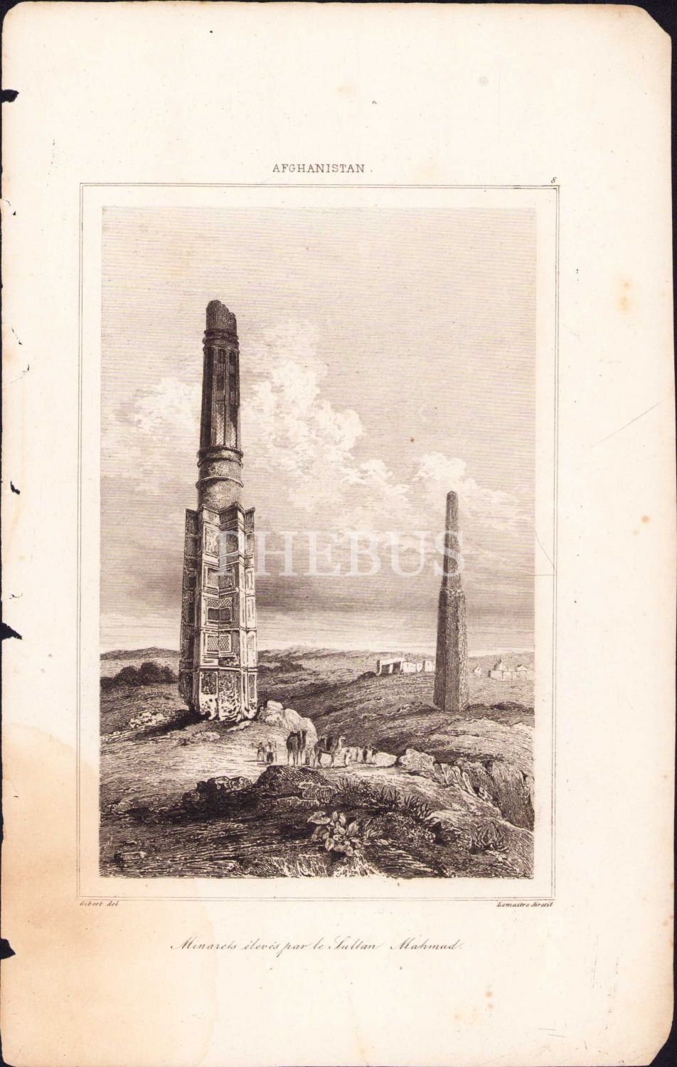 Osmanlı dönemi gravür, Afganistan, Sultan Mahmud minaresi, 13x20 cm