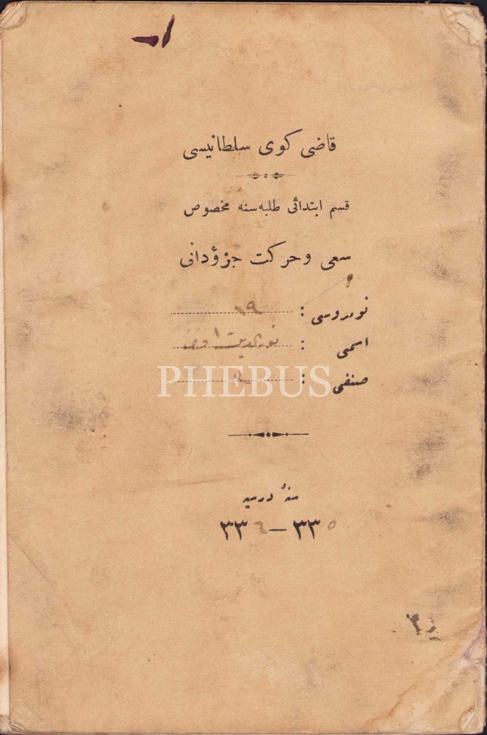 Osmanlıca Kadıköy Sultanisi talebeye mahsus sai ve hareket cüzdanı, 1336 tarihli, 10x16 cm