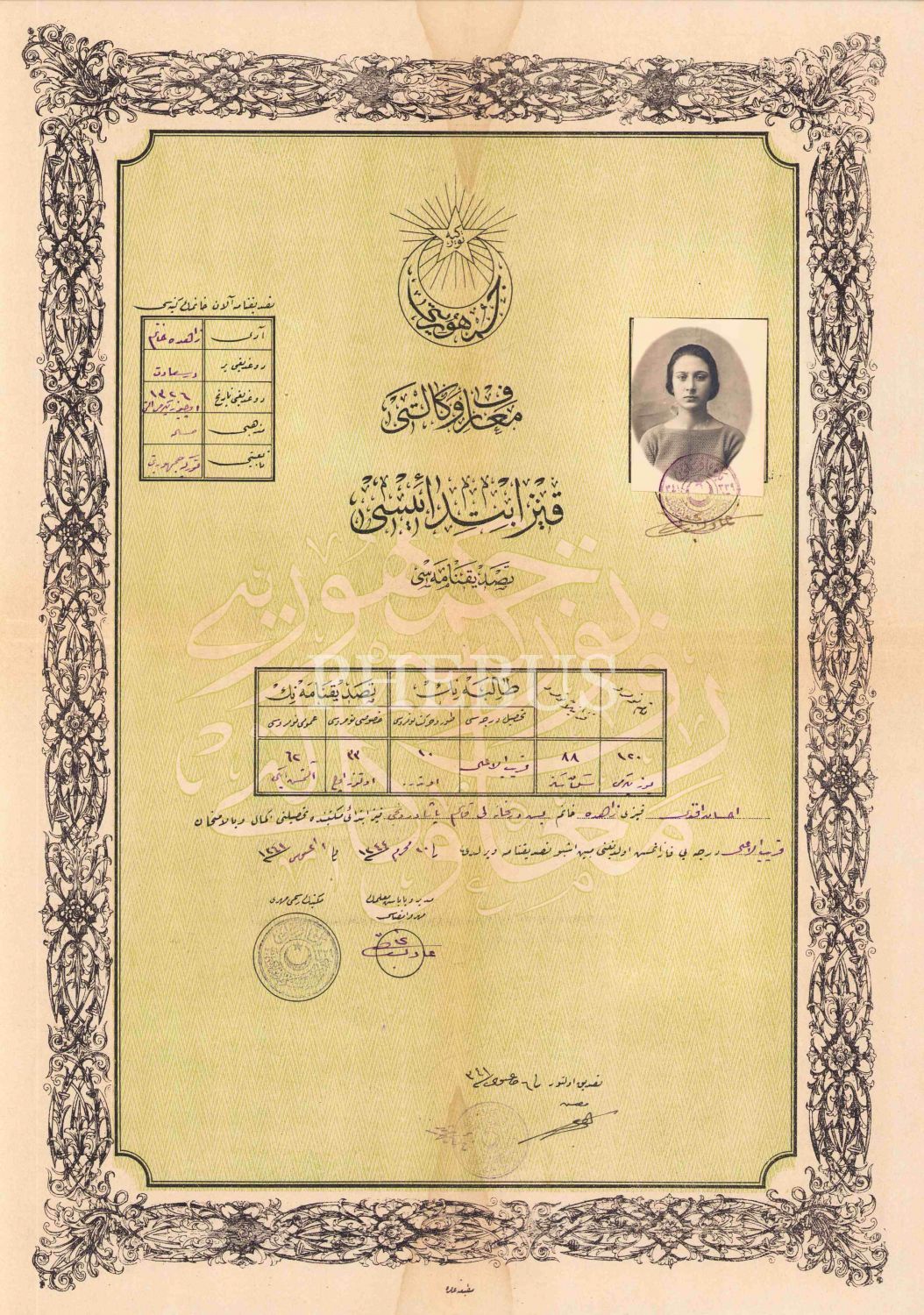 Osmanlıca tasdikname, 5 Dershaneli Kasım Paşa Dördüncü Kız İbtidaisi, 1341, 33x50 cm